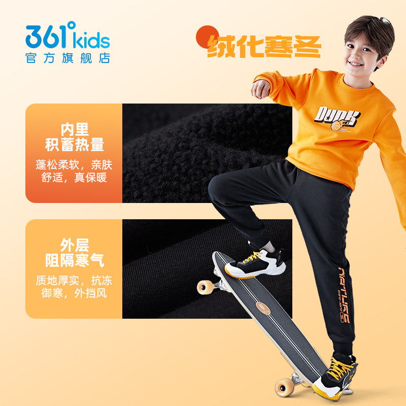 361°童装男童针织长裤2025冬季新款加绒保暖中大童休闲运动裤子