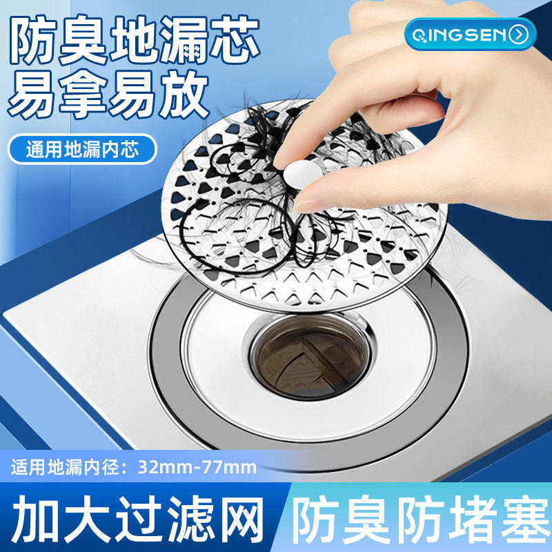 防臭地漏芯卫生间通用防虫毛发过滤网下水管道防返神器封口盖排水