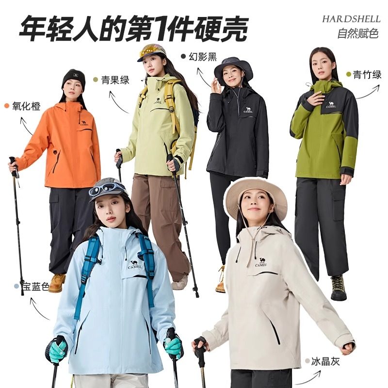 骆驼女装单层冲锋衣2025新款秋冬户外防风防水连帽立领男女款外套