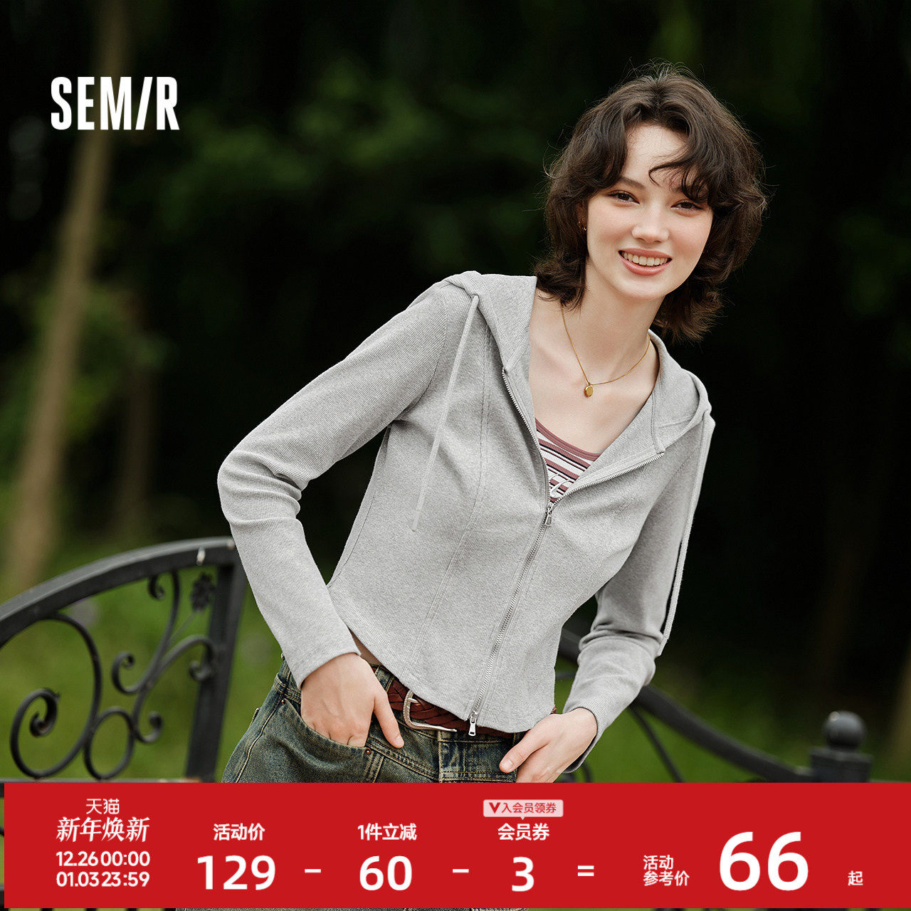 森马外套女短款分割纯色显瘦小个子衣服秋季正肩紧身连帽夹克百搭