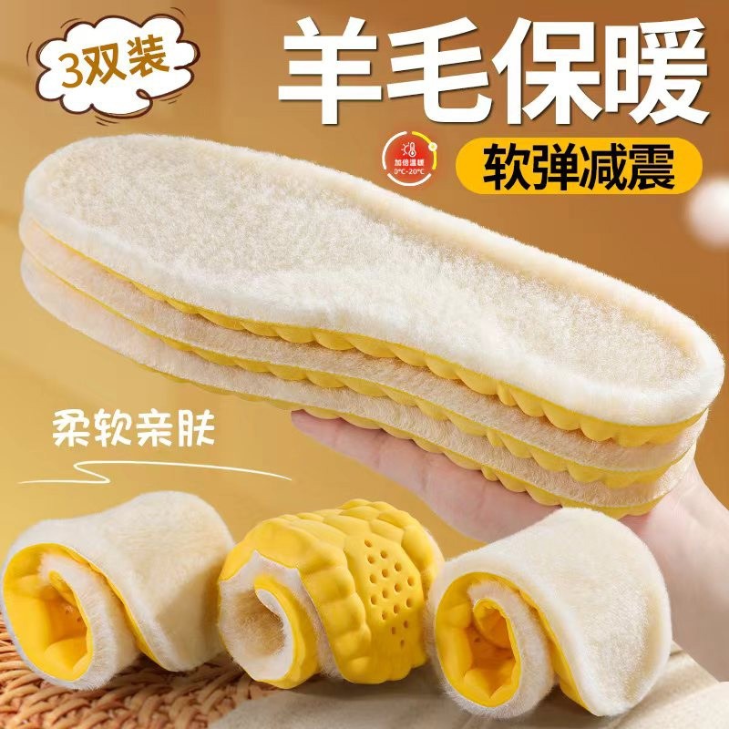 羊毛鞋垫冬季棉鞋垫透气吸汗防臭皮毛仿澳洲羊毛加绒加厚保暖鞋垫