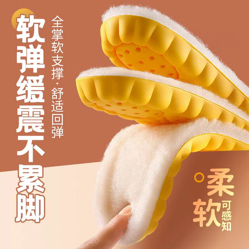 羊毛保暖棉鞋垫冬季加绒加厚防寒加热女软底舒适踩屎感男吸汗防臭