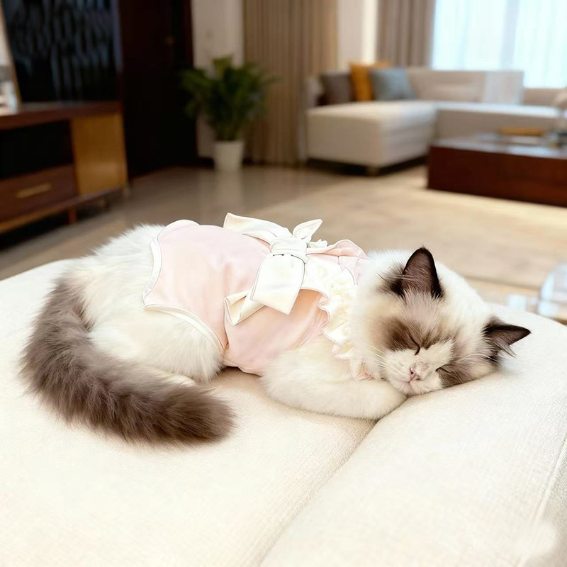 宠物秋季小狗狗护肚衣小型犬幼犬睡衣猫咪泰迪四脚衣服绝育服粉色