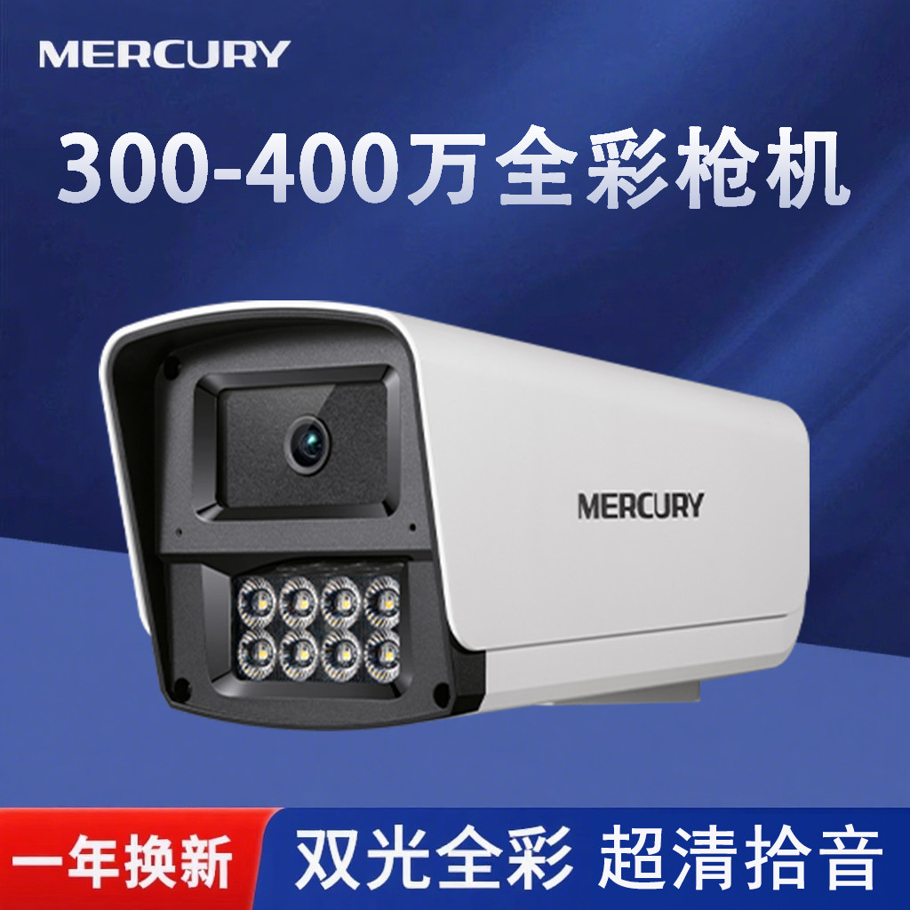 水星监控摄像头poe供电枪机室内球防水高清全彩红外夜视语音对讲300W400万摄影头家用手机遥控户外防晒录像机
