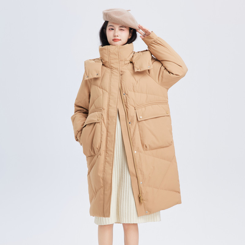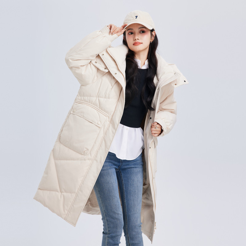 雪中飞2025秋冬新款女士中长款羽绒服插肩袖宽松气质温柔韩版