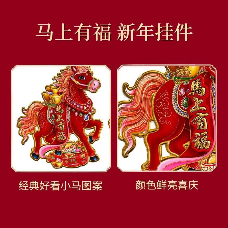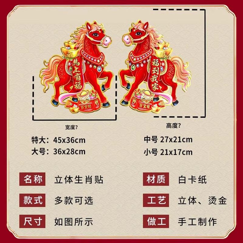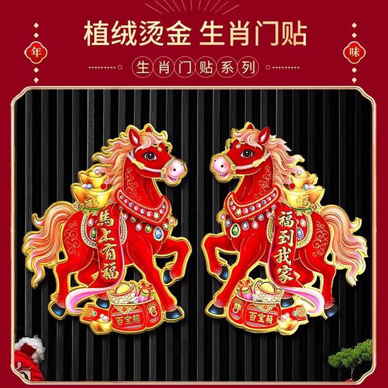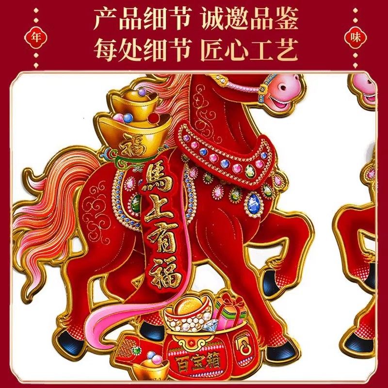 2026马年门贴卡通立体生肖春节过年年画新年用品福字对联窗花烫金
