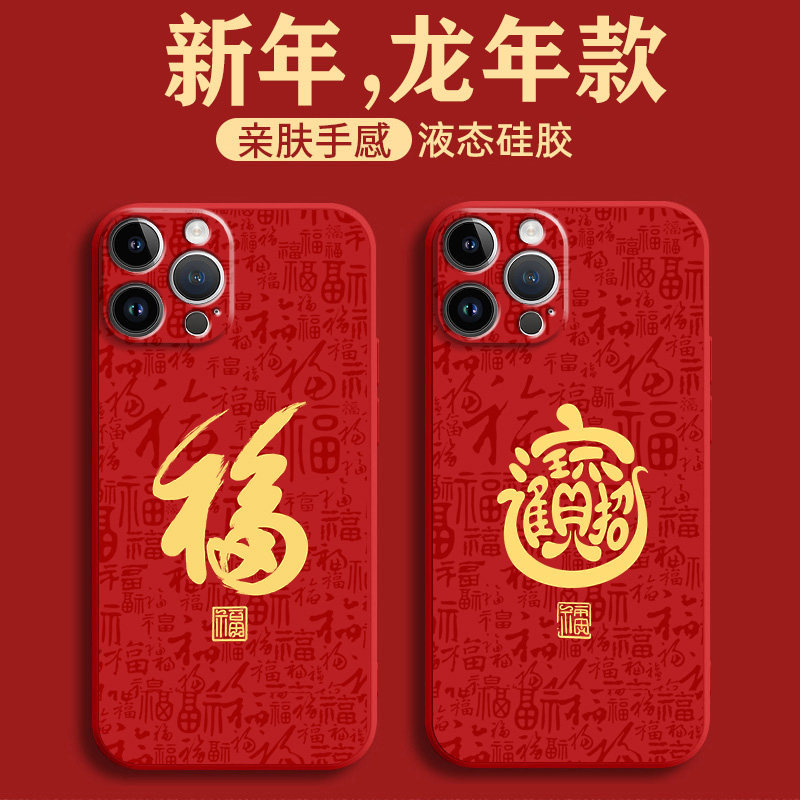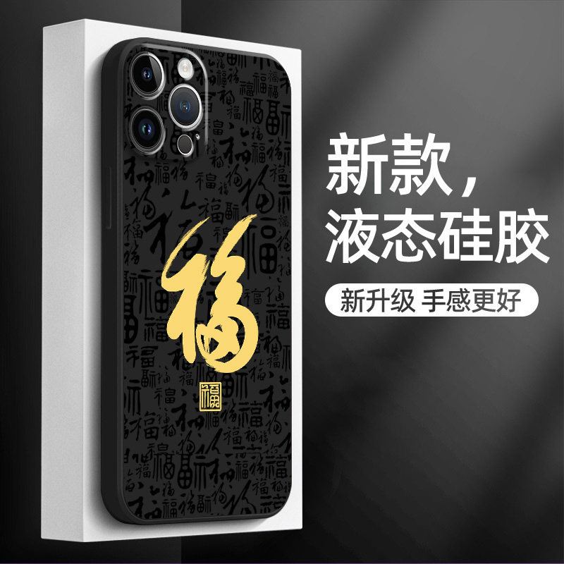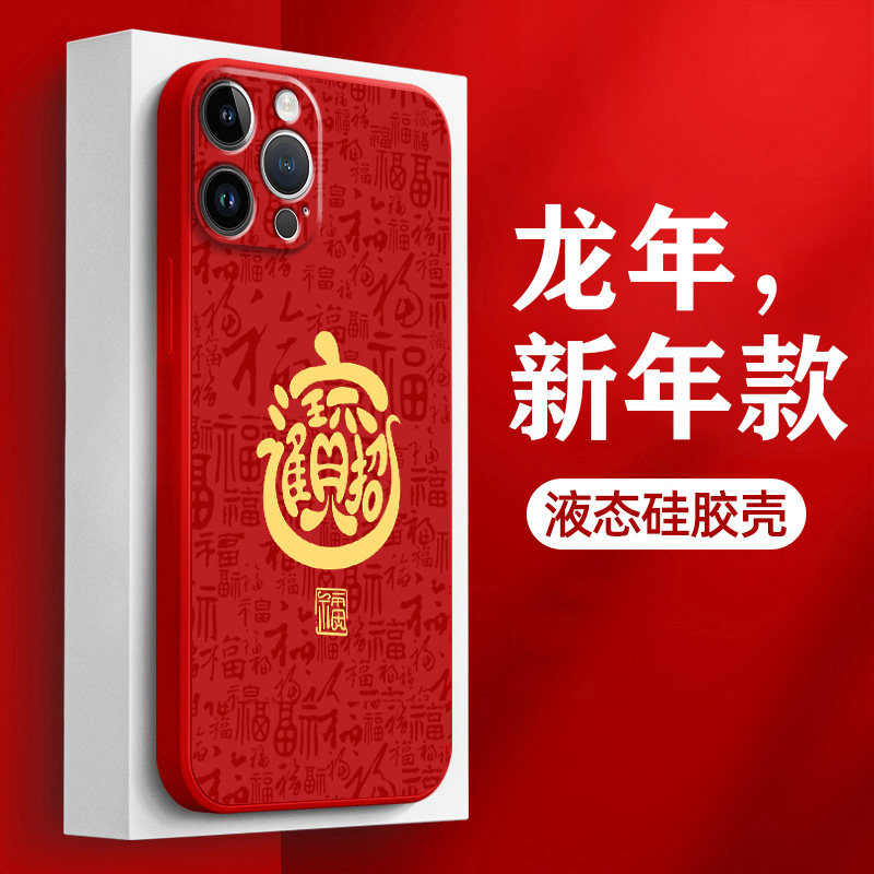 招财进宝适用苹果17手机壳16中国风文字iphone13液态硅胶14promax镜头全包12mini新年红11本命年十五pm保护套