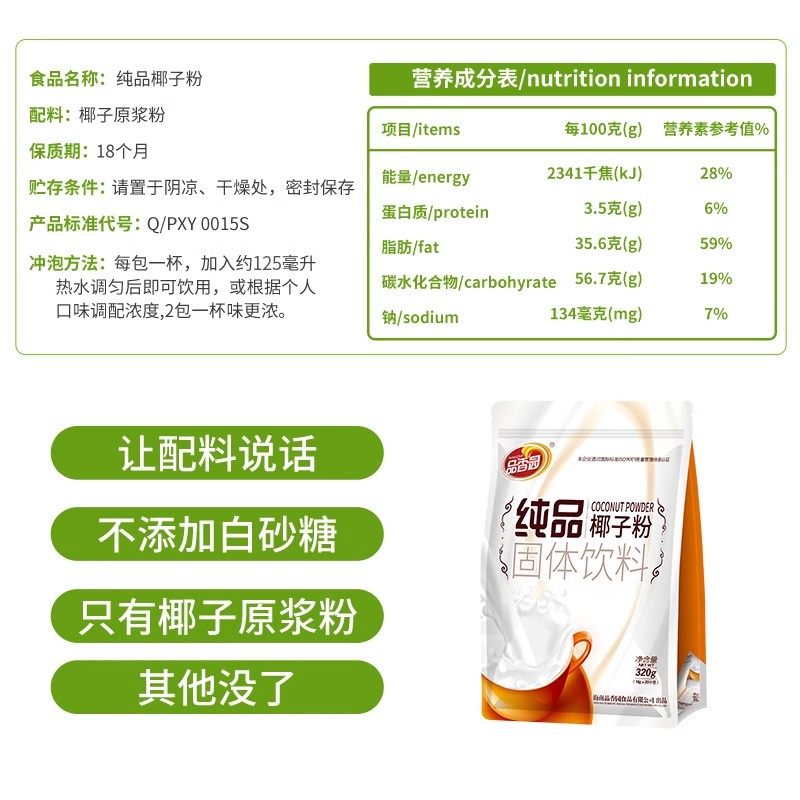 海南品香园椰子粉纯椰奶椰汁代餐粉速溶冲饮椰子汁320g国货饮料