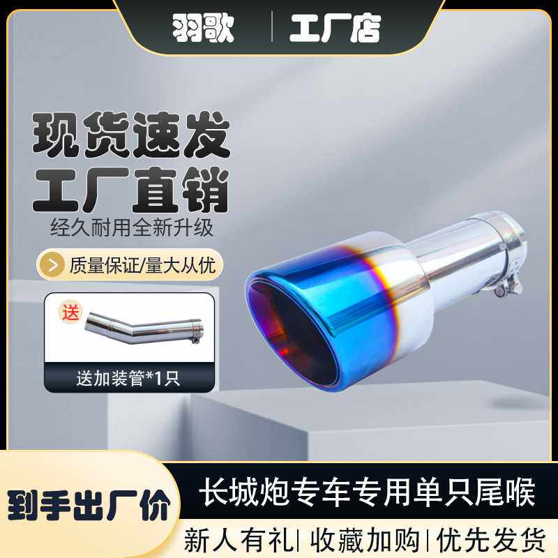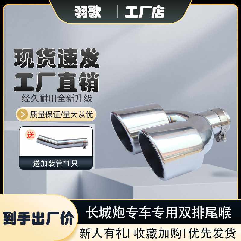 改装皮卡一出二专用不锈钢尾喉适用于长城炮排气管尾喉尾气罩加装