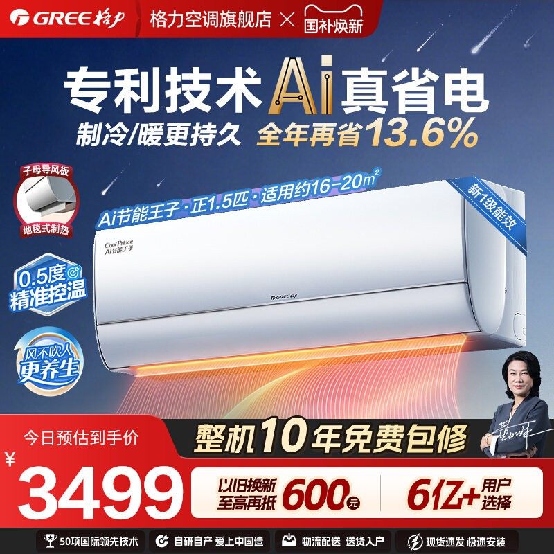 【格力官方】格力官方空调挂机家用正1.5匹新一级变频AI节能王子