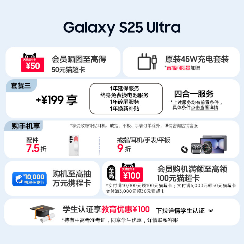 【88VIP至高省2000元】Samsung/三星Galaxy S25 Ultra新款骁龙8至尊版游戏AI手机2亿像素影像官方正品