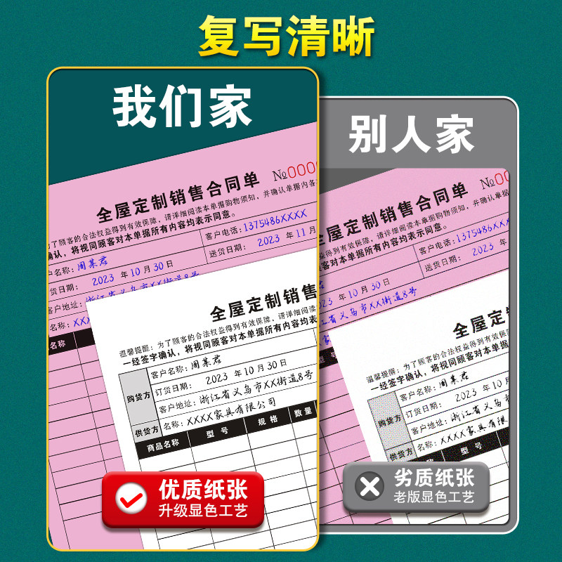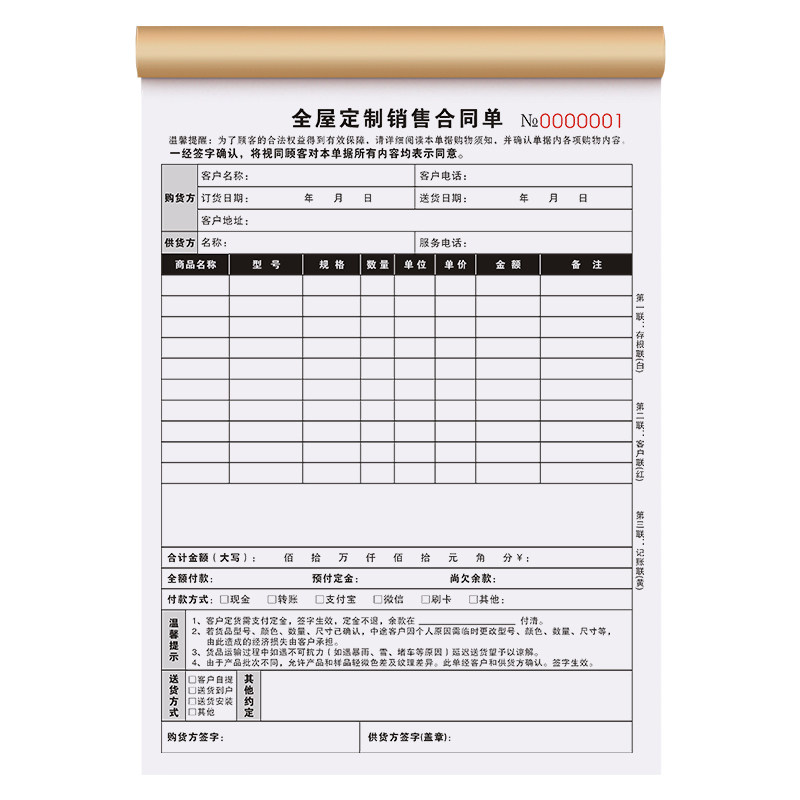 全屋定制合同三联家居预算测量订单开票本三联单厨柜定购单据定做窗帘销售送货单3连柜子定单三连订货单3联