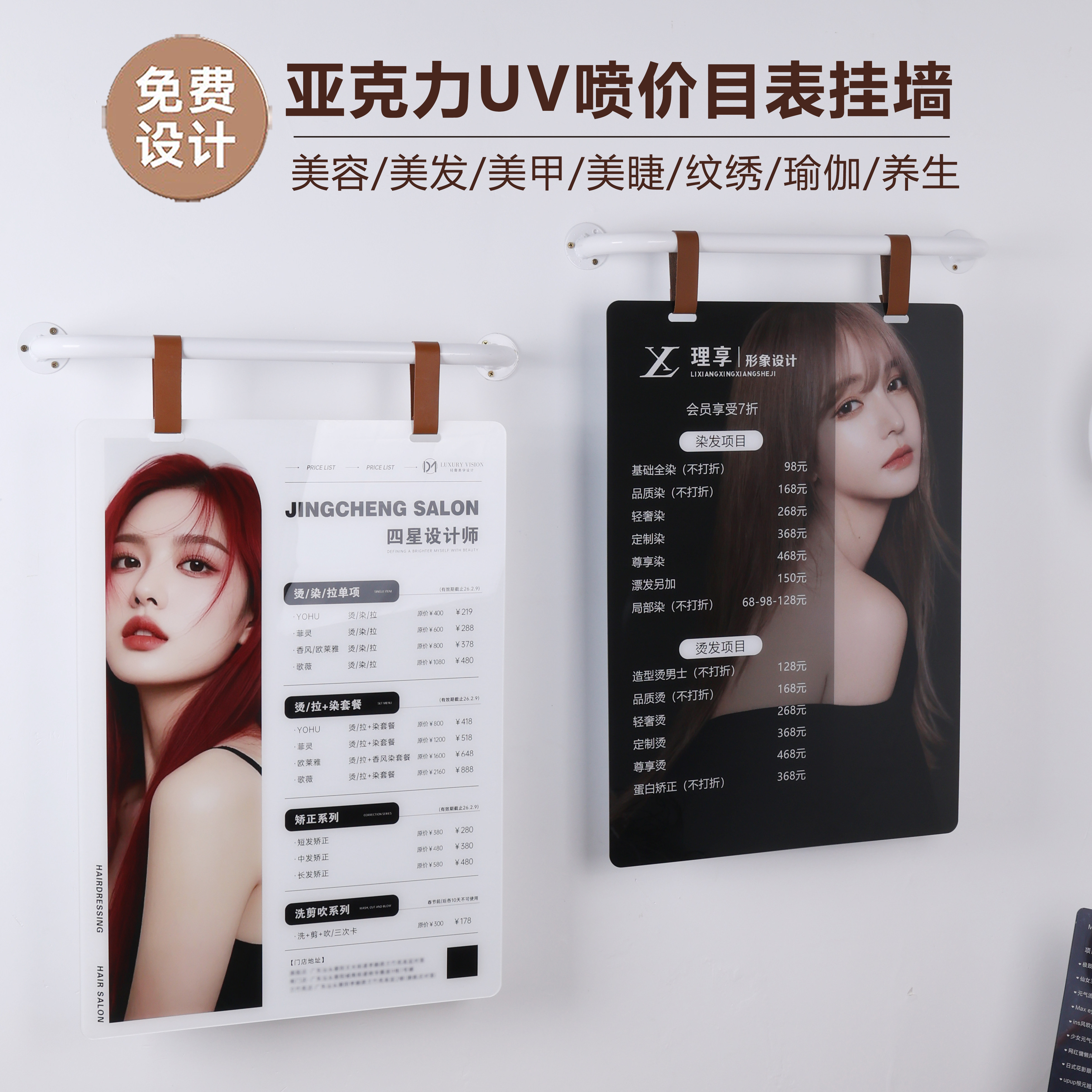 美容院价格表展示牌设计定制亚克力美甲美睫养生挂墙理发店价目表