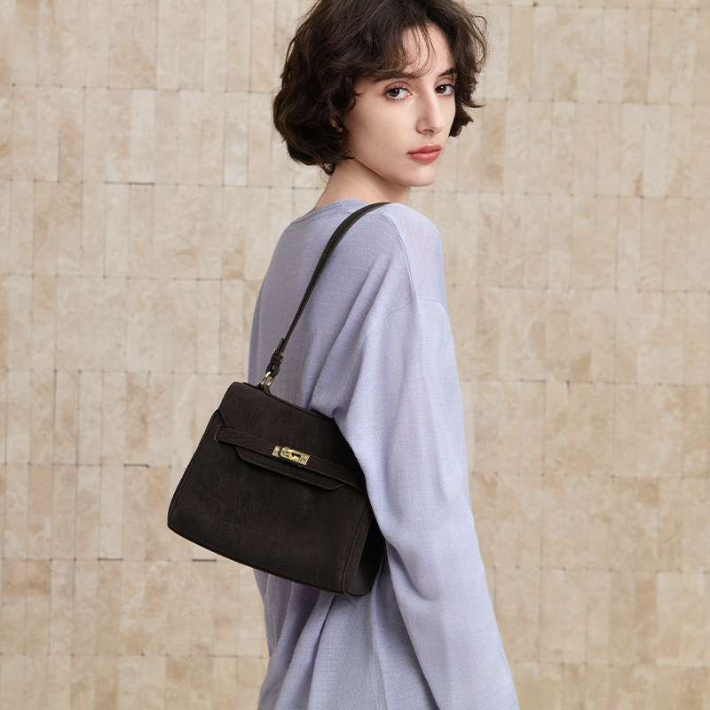 ELLE女包新款高级感凯莉包上班通勤腋下单肩包托特包女士轻奢包包