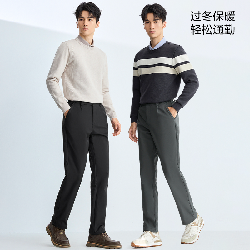 HLA/海澜之家轻商务加厚直筒休闲裤25秋冬季新款半松紧腰裤子男士