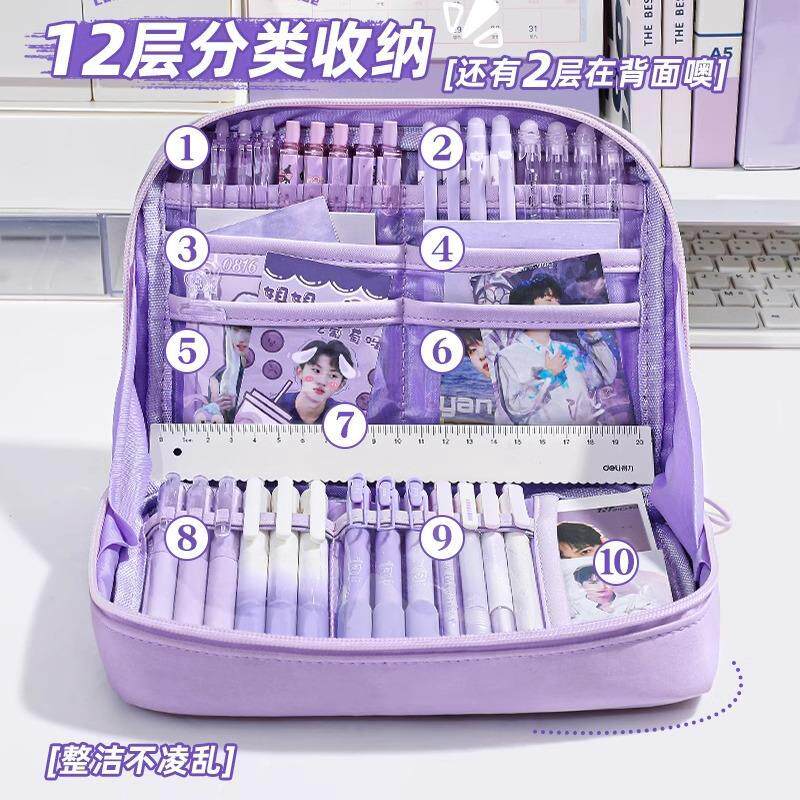12层超大容量笔袋女生2025新款文具女孩高颜值铅笔盒儿童透明痛包