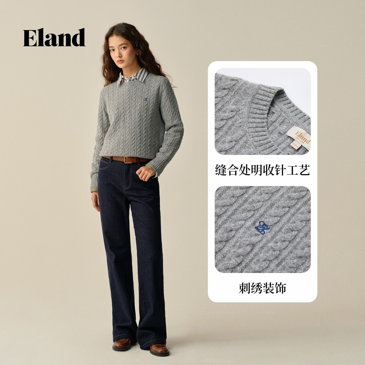 【100%美丽诺羊毛】Eland衣恋毛衣女短款长袖针织衫2025冬季新款