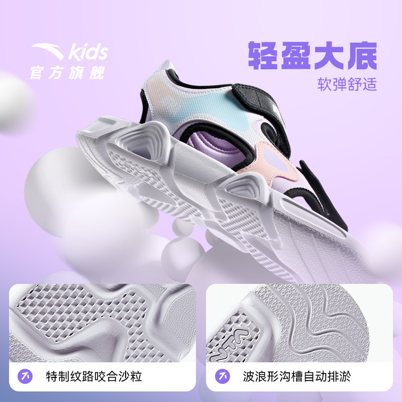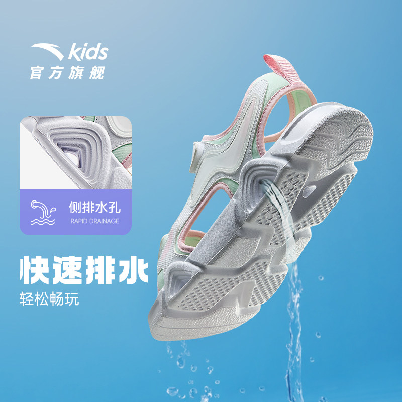 安踏儿童女童露趾运动凉鞋大童女孩2025夏季新款防滑户外沙滩凉鞋