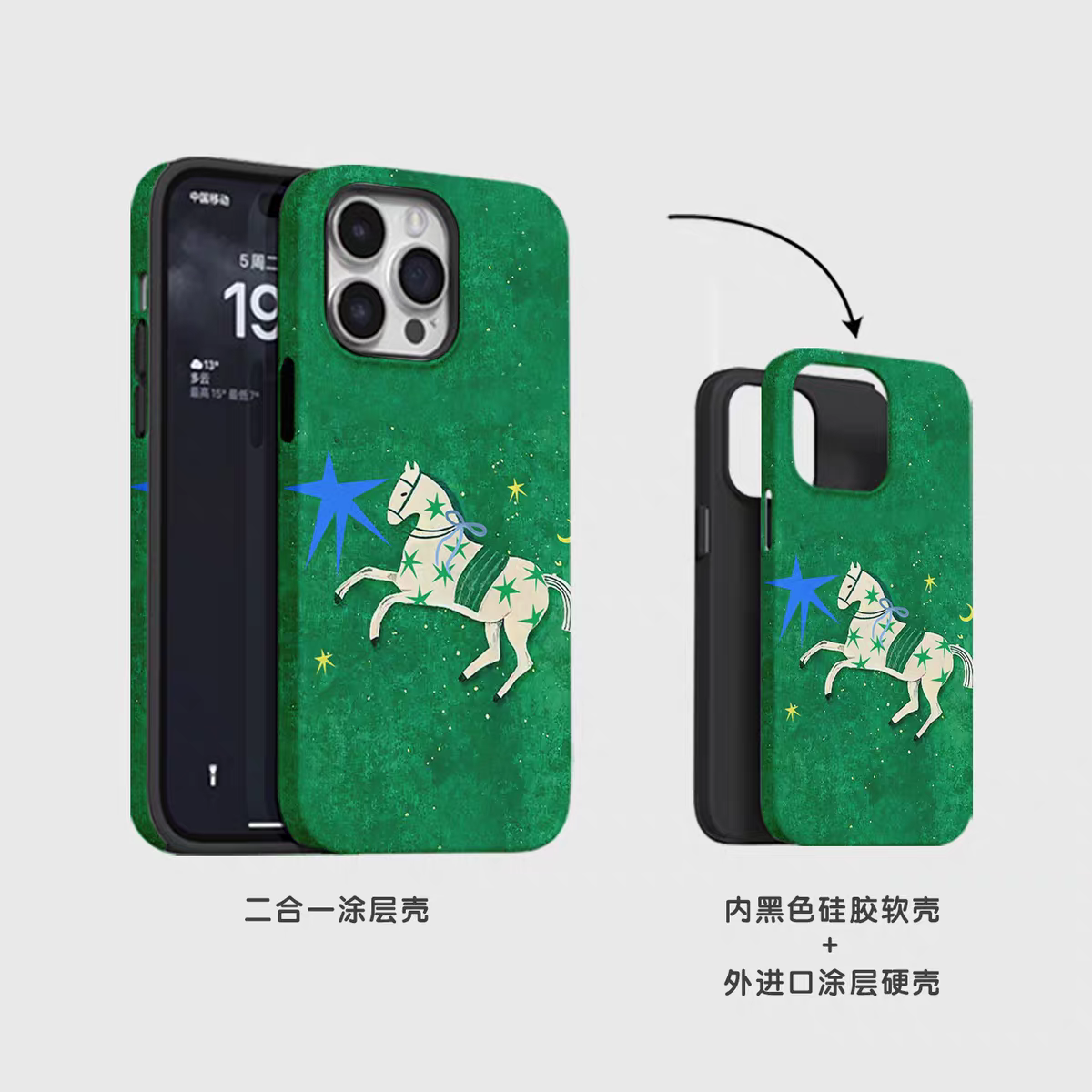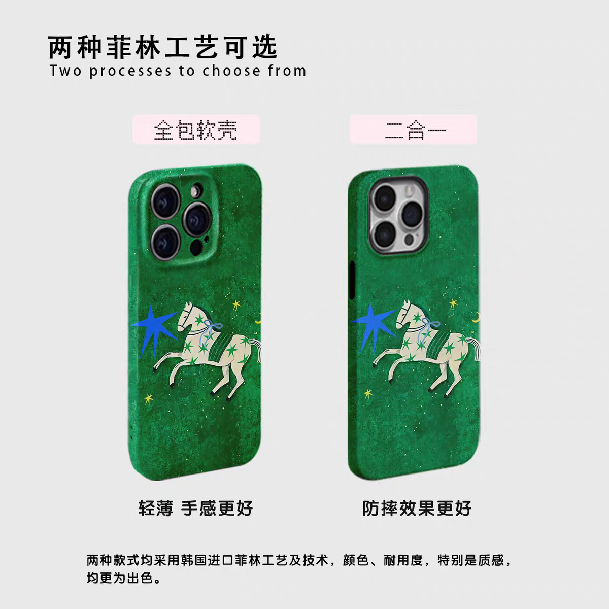 适用于iPhone16Promax绿野星空白马15promax手机壳14pro艺术xr油画12软壳11高级感15plus小众苹果13promax