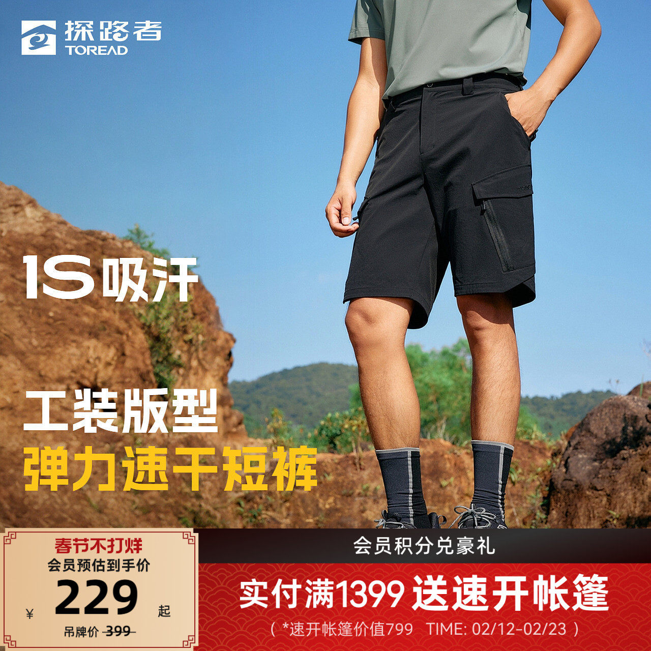 探路者速干裤2026新款男短裤徒步户外舒适弹力吸湿速干运动裤
