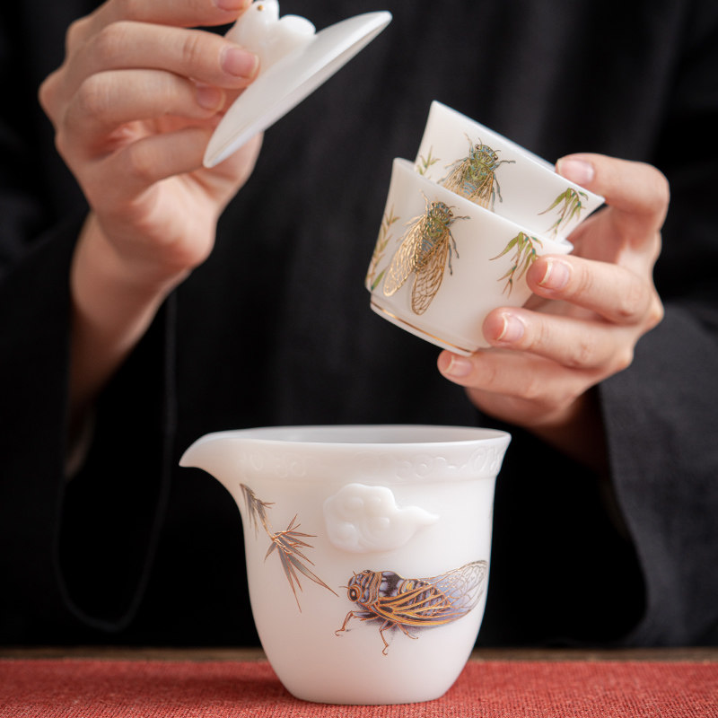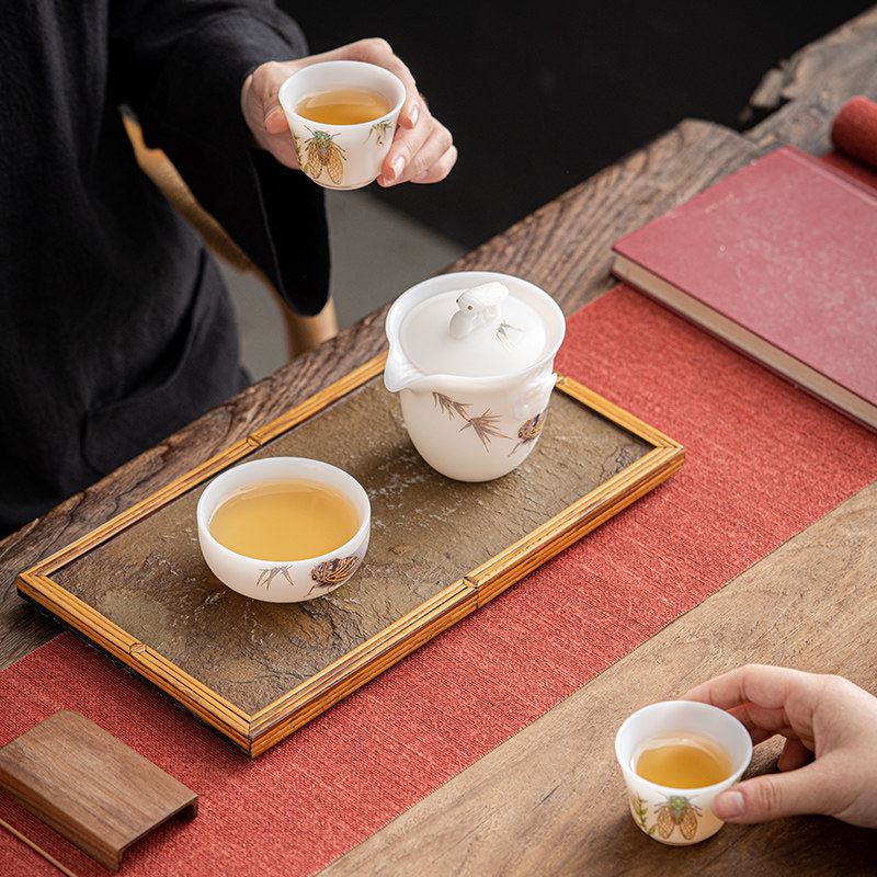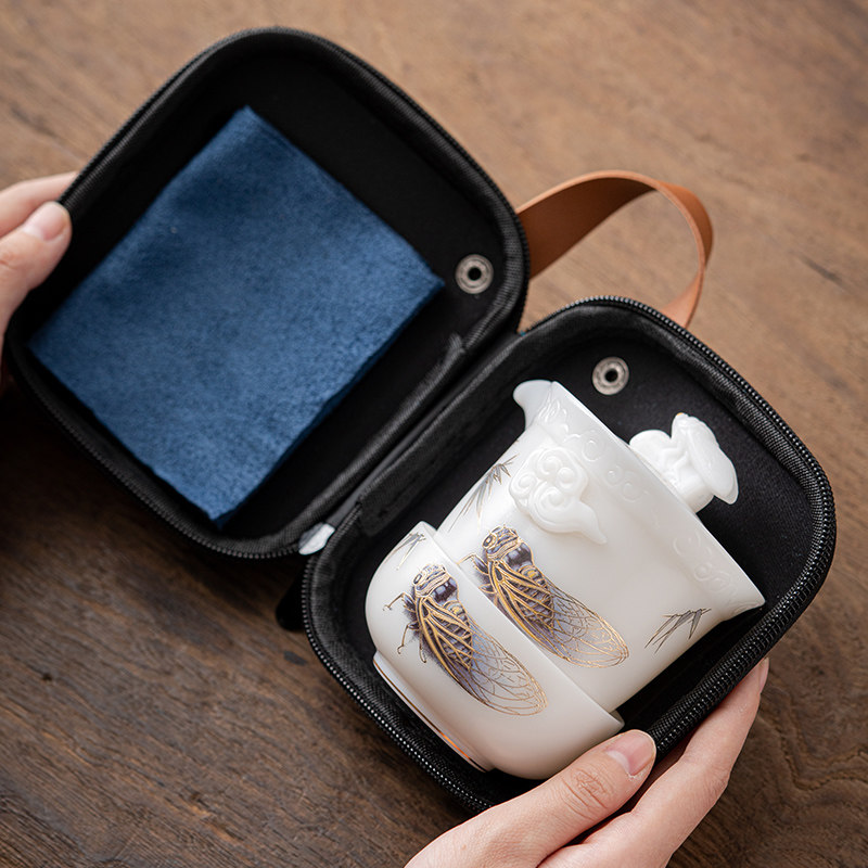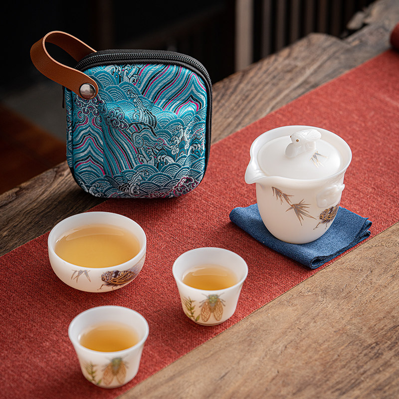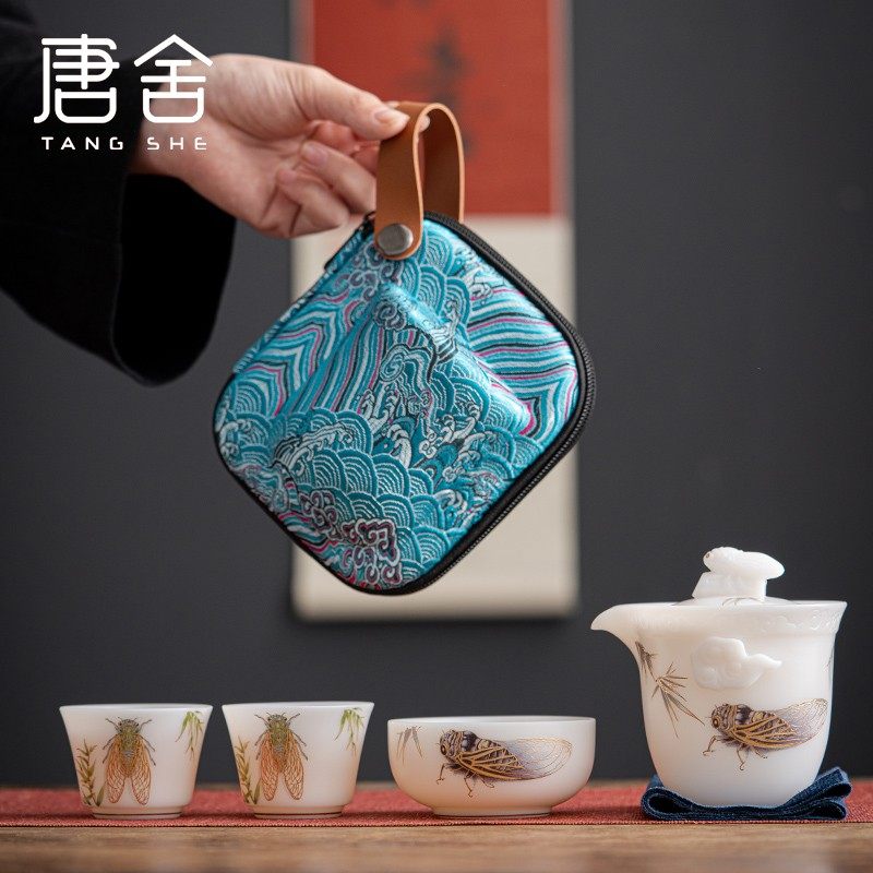 唐舍 冰种羊脂玉瓷快客杯一壶三杯旅行茶具套装白瓷泡茶壶便携包