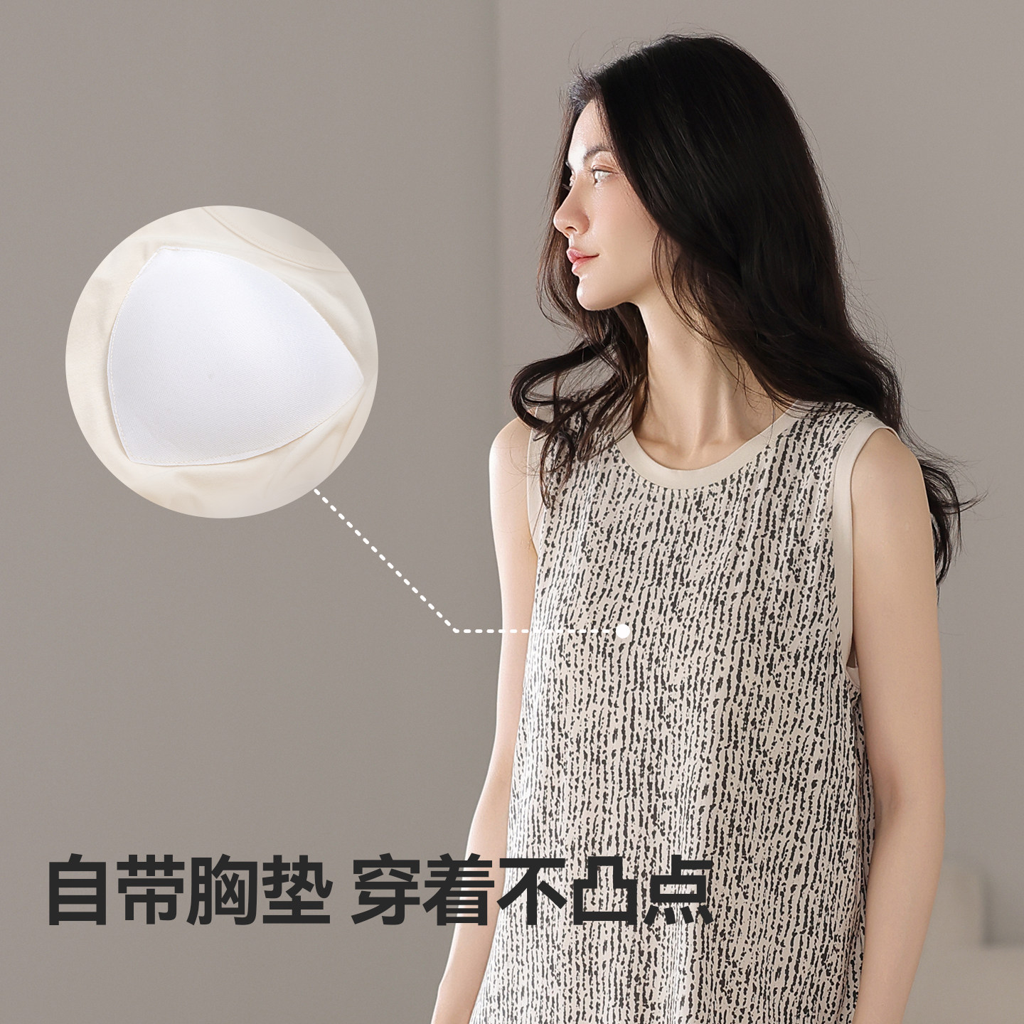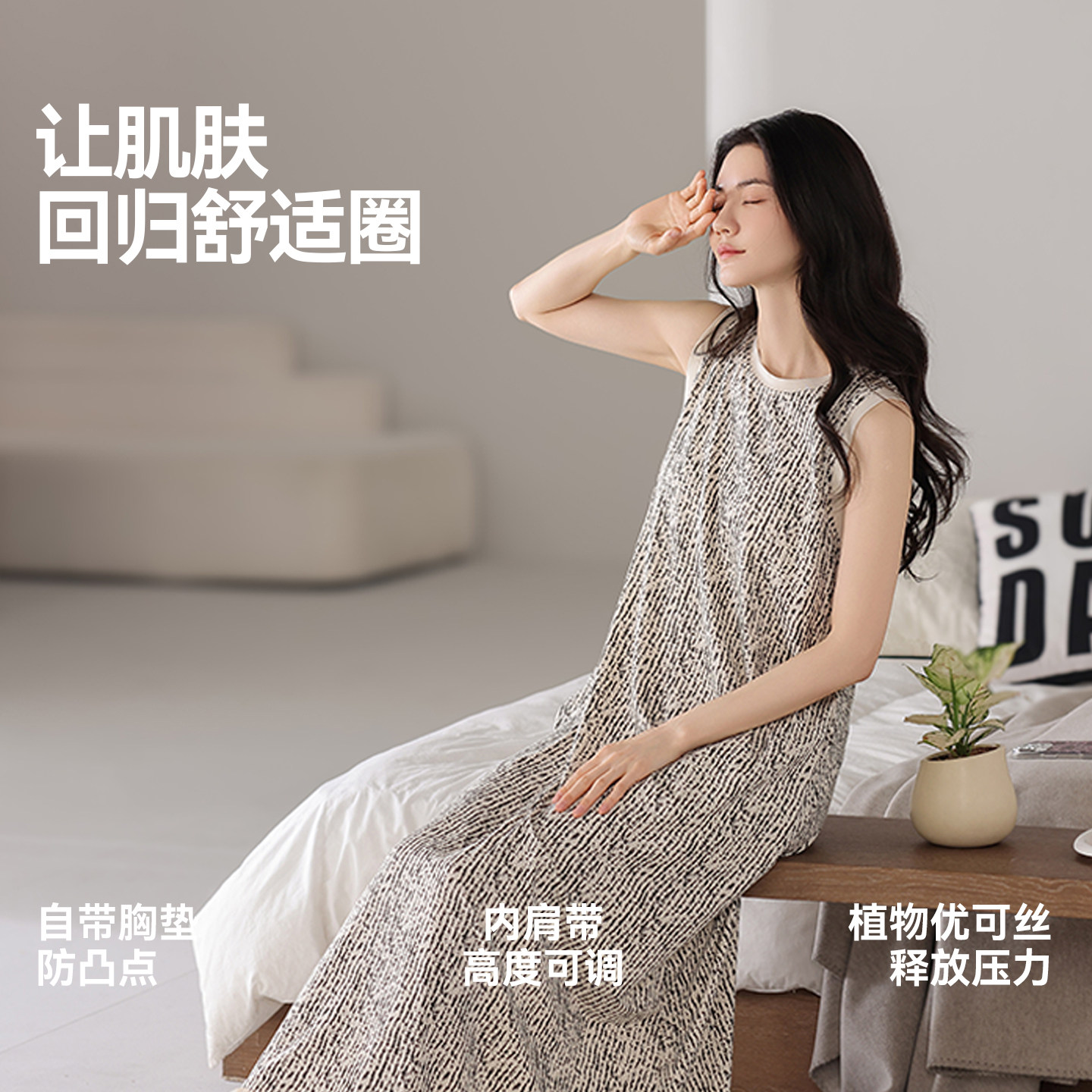 猫人女士睡裙25新款夏季无袖长裙睡衣带胸垫薄款宽松可外穿家居服