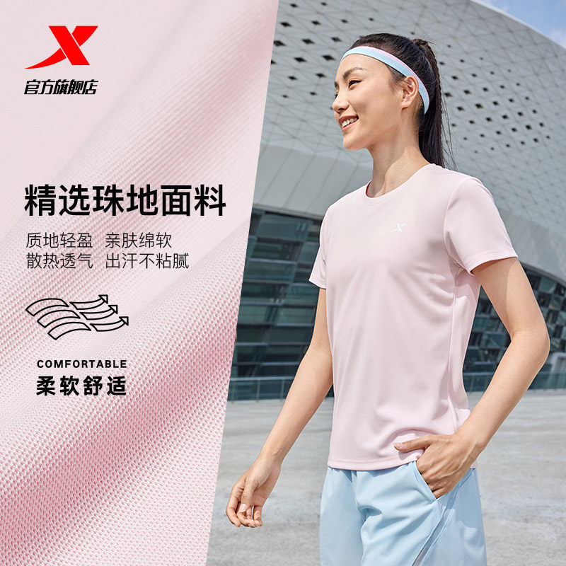 特步速干T女官方新款夏季训练女装健身T恤透气妈妈体恤运动短袖女