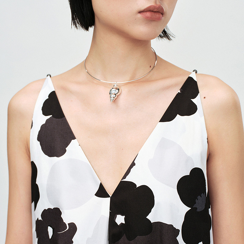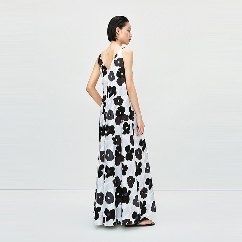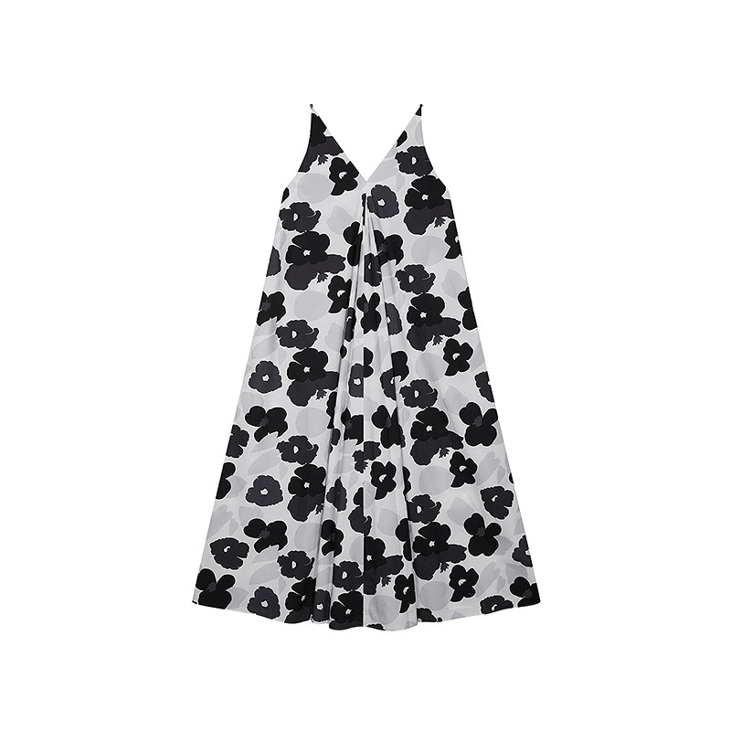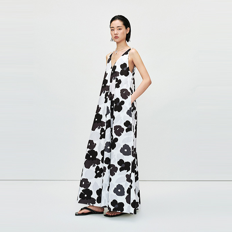 LESS夏印花进口全棉府绸度假吊带A版宽松阔形长款连衣裙2P6G11860