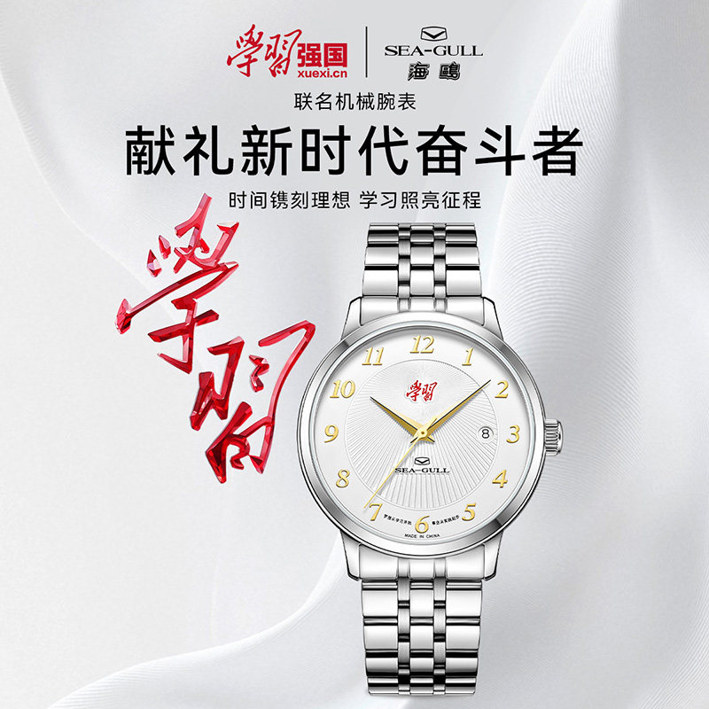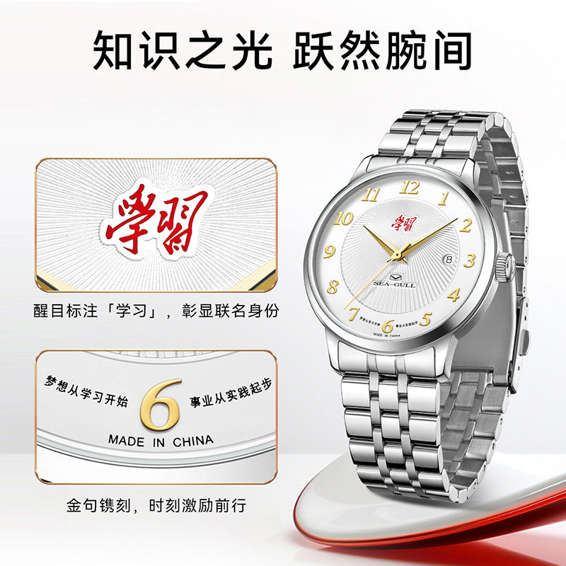 海鸥表学习强国联名机械表男女款商务防水手表D1016