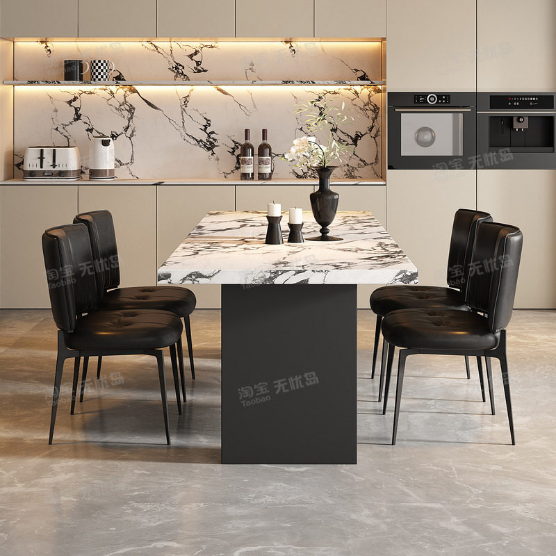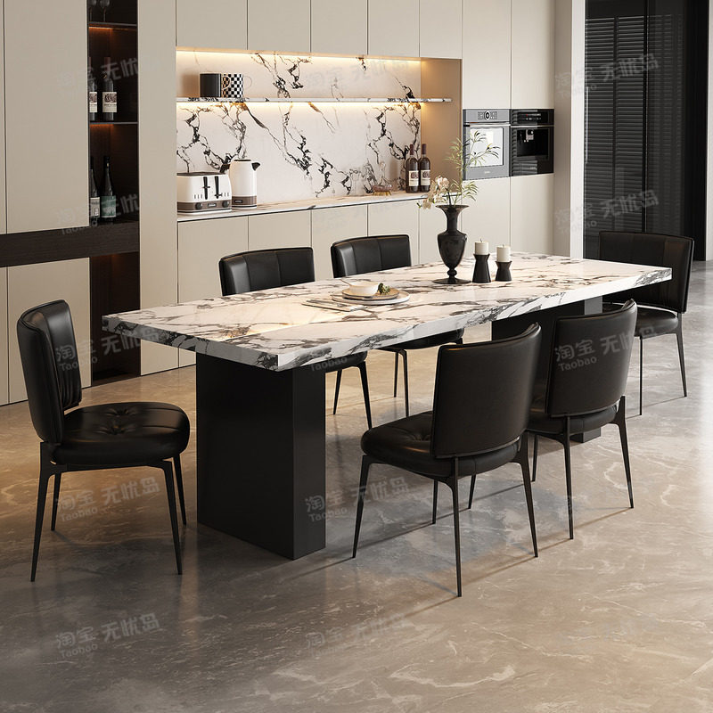 2026新款全岩板餐桌家用轻奢高级感长方形饭桌子意式极简岩板餐桌