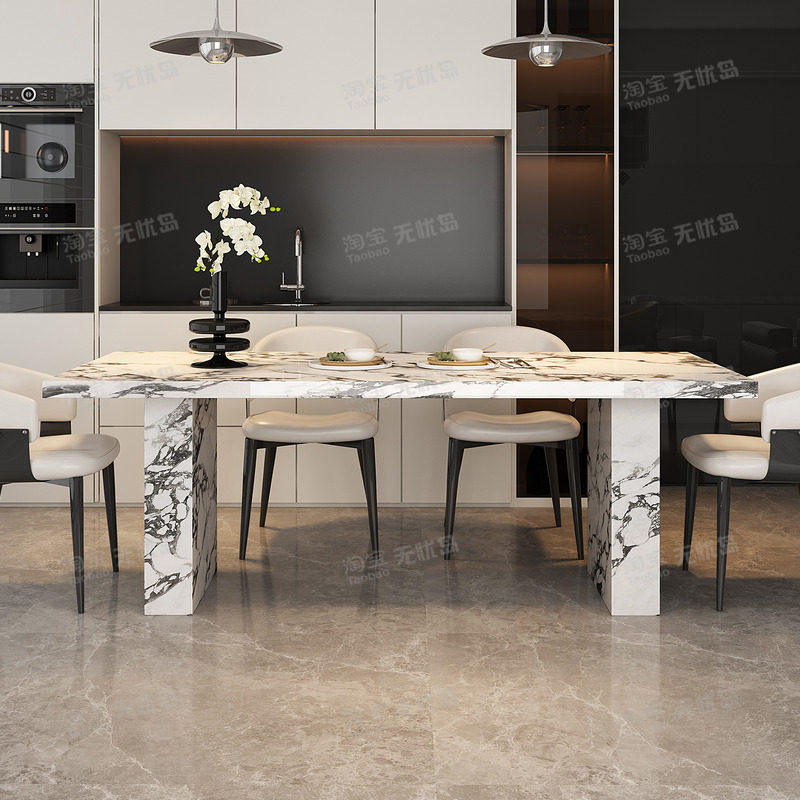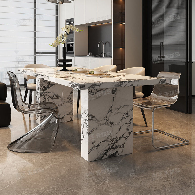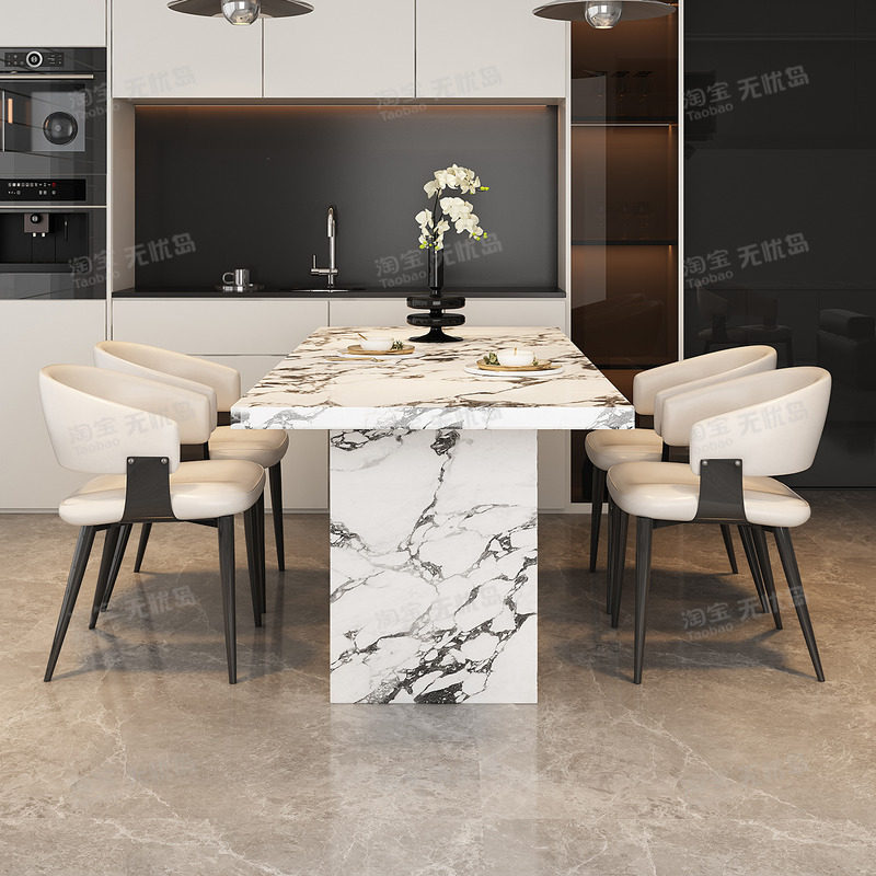 全包边高级感宝格丽加厚岩板餐桌椅组合意式极简轻奢长方形餐桌