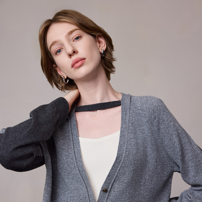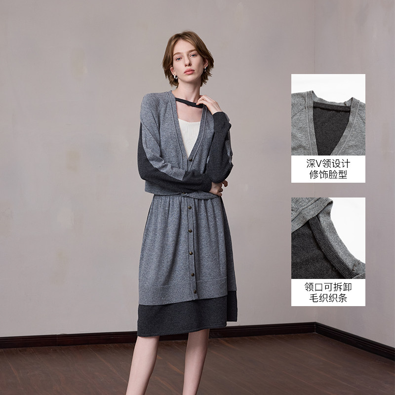 MSLAN格雷系两件套 26春软糯羊毛质感短款灰色针织衫A字半裙套装