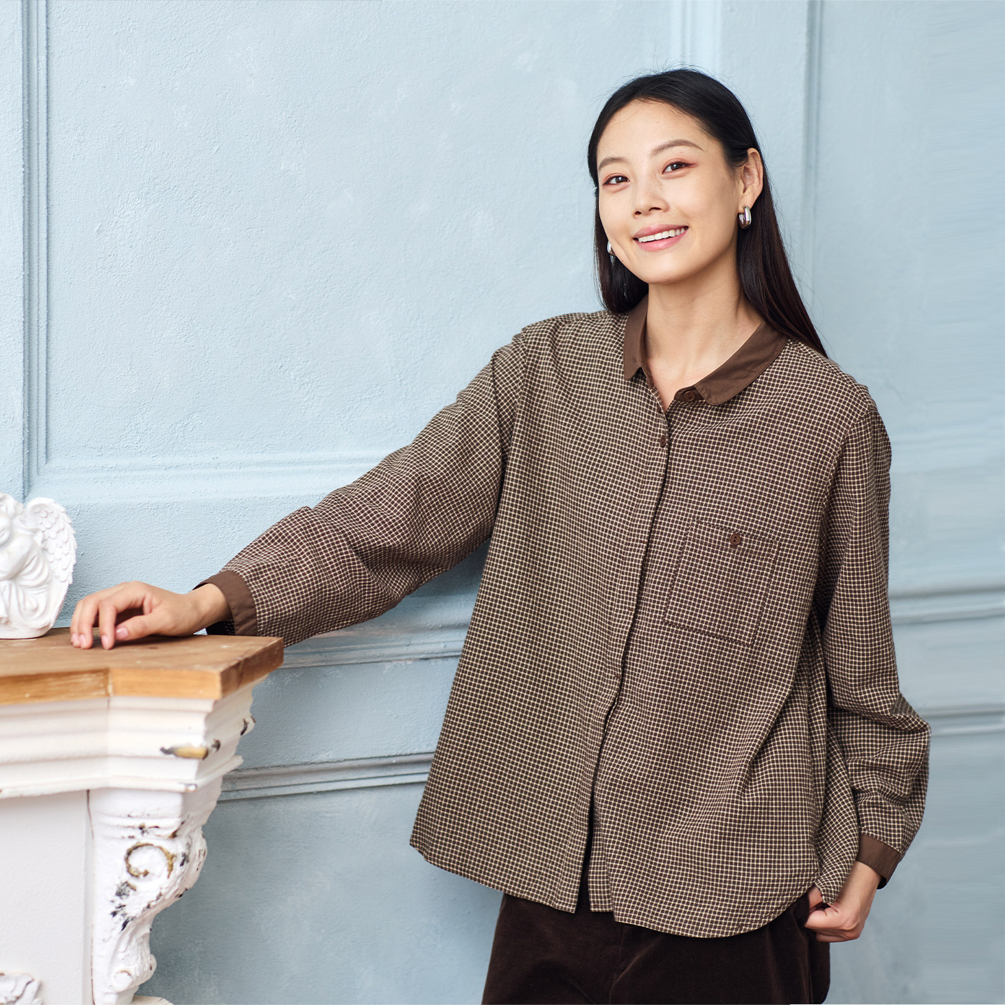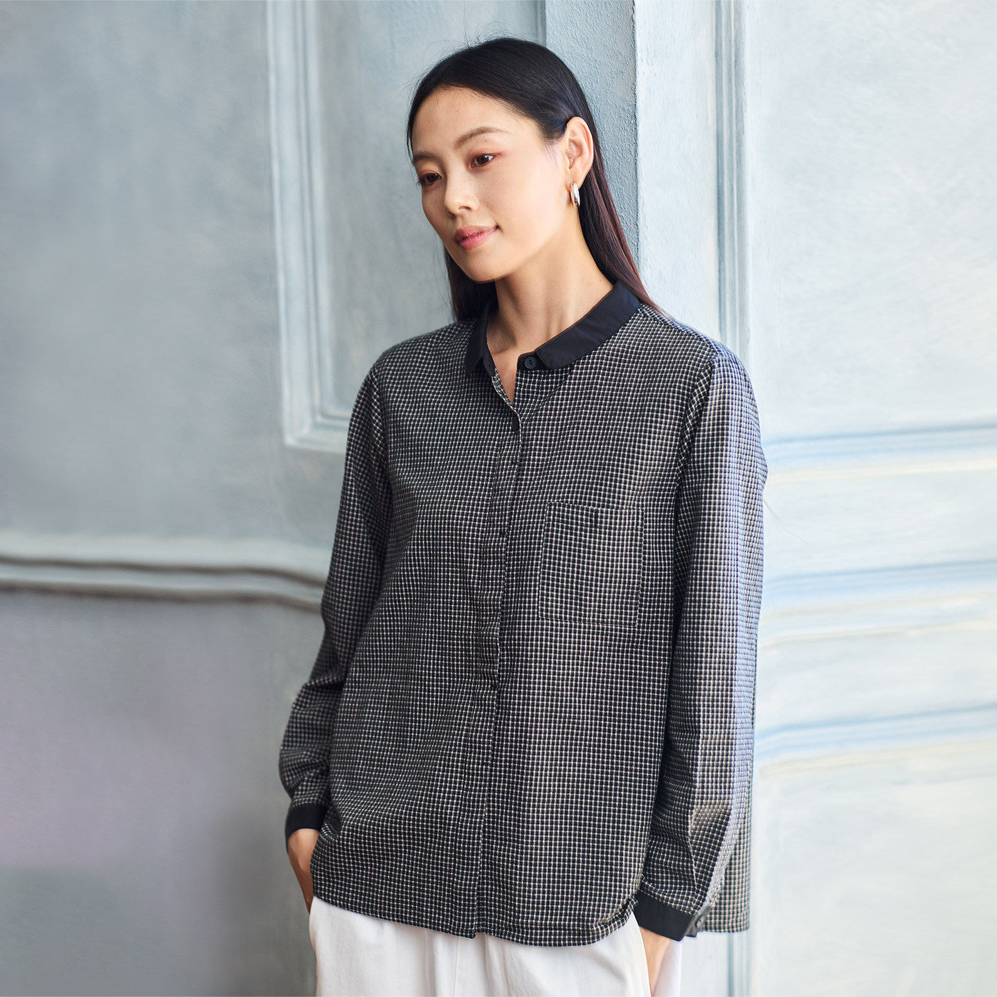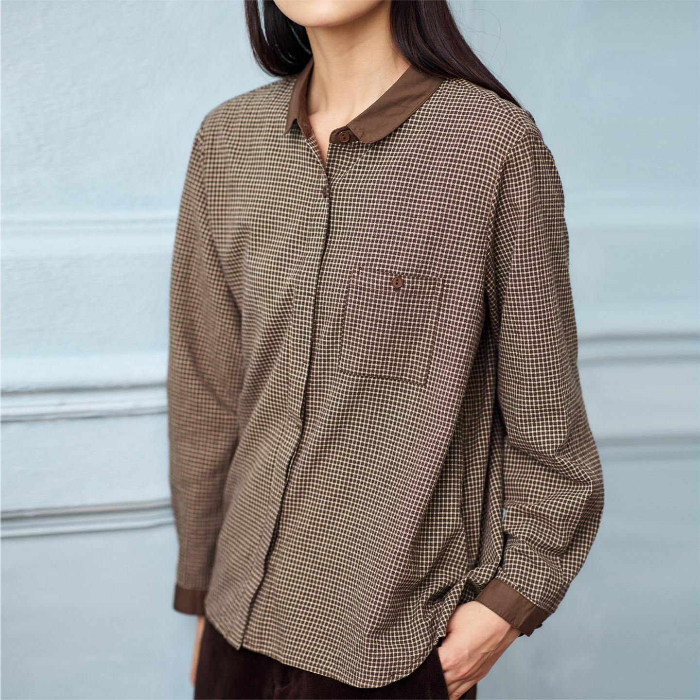 无色无味衬衫女新款棉质休闲小方格设计感宽松清秀格纹显瘦上衣