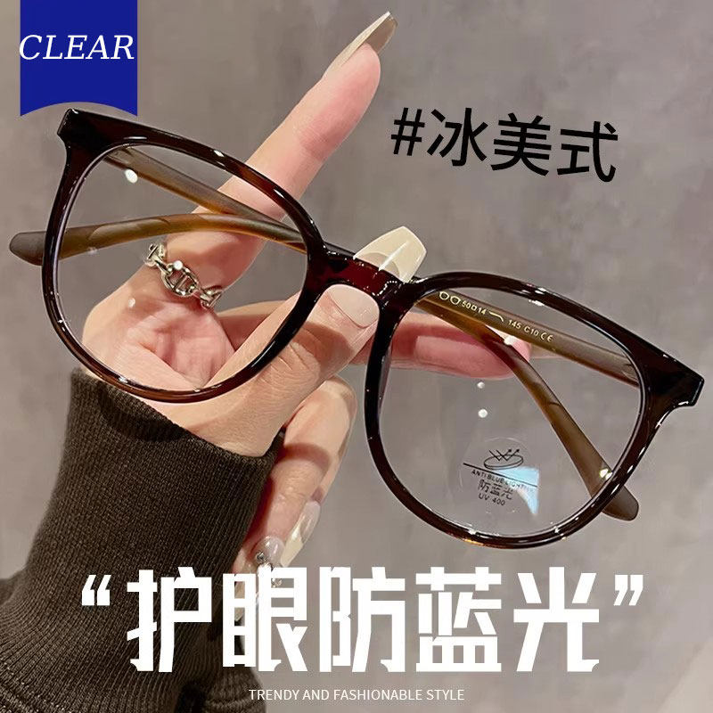 超轻眼镜女可配近视度数冷茶色素颜神器大框显脸小眼睛方圆脸镜架