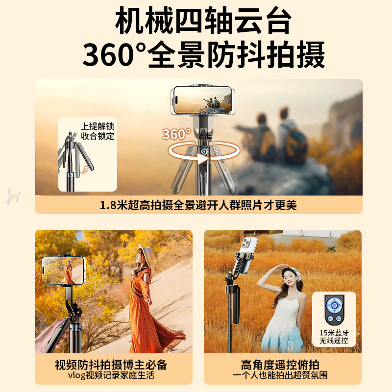 2025新款手机支架落地式直播支架拍照拍摄三脚架自拍杆户外旅游便携360旋转多功能支撑架子蓝牙遥控防抖云台