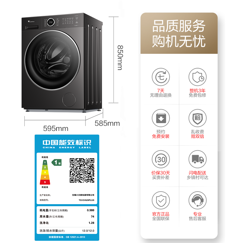 [纯平自由嵌]小天鹅全自动家用12KG水魔方洗脱一体滚筒洗衣机628P