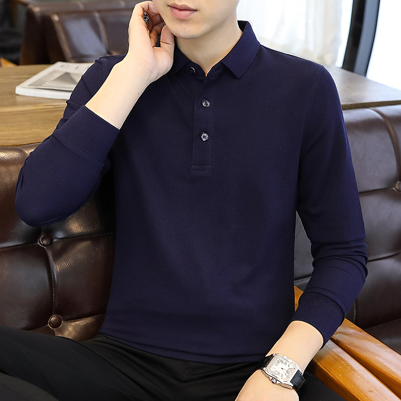 啄木鸟长袖t恤男士2024新款打底上衣服翻领春秋季爸爸装polo衫男