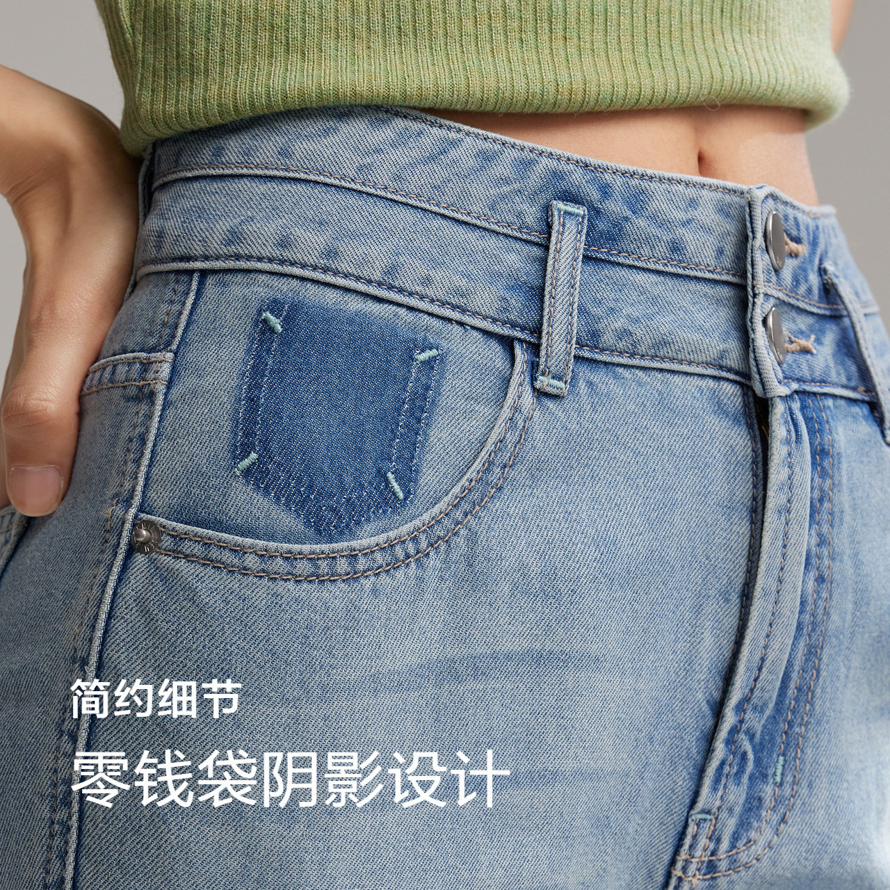 森马牛仔裤女凉感直筒裤港风2024夏季新款小个子九分裤显高百搭潮