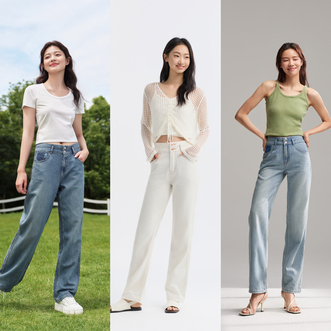 四面弹丹宁色牛仔阔腿裤25年新款宽松显瘦牛仔长裤89173