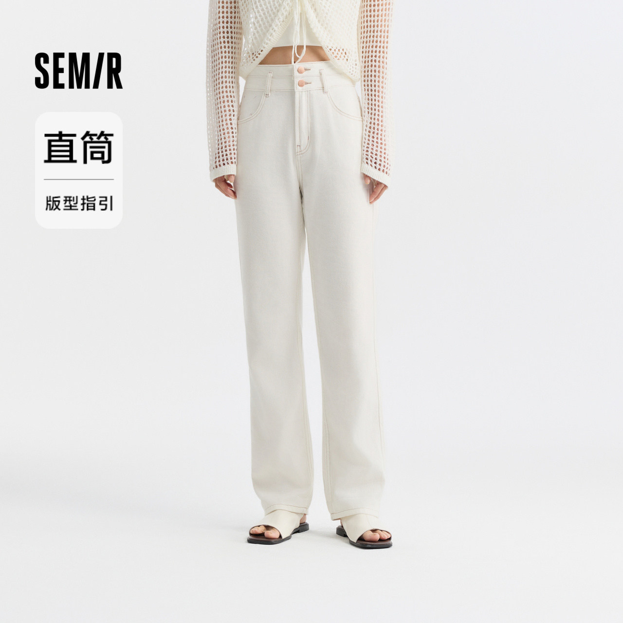 森柔牛仔|森马阔腿牛仔裤女2025秋冬白色牛仔裤简约女士高腰裤子