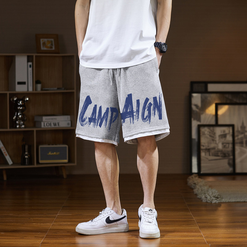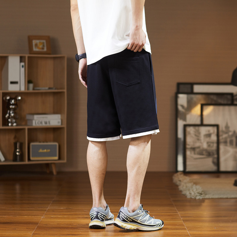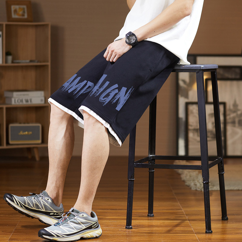 唐狮夏季新款休闲短裤男美式字母潮流个性拼接撞色五分裤中裤