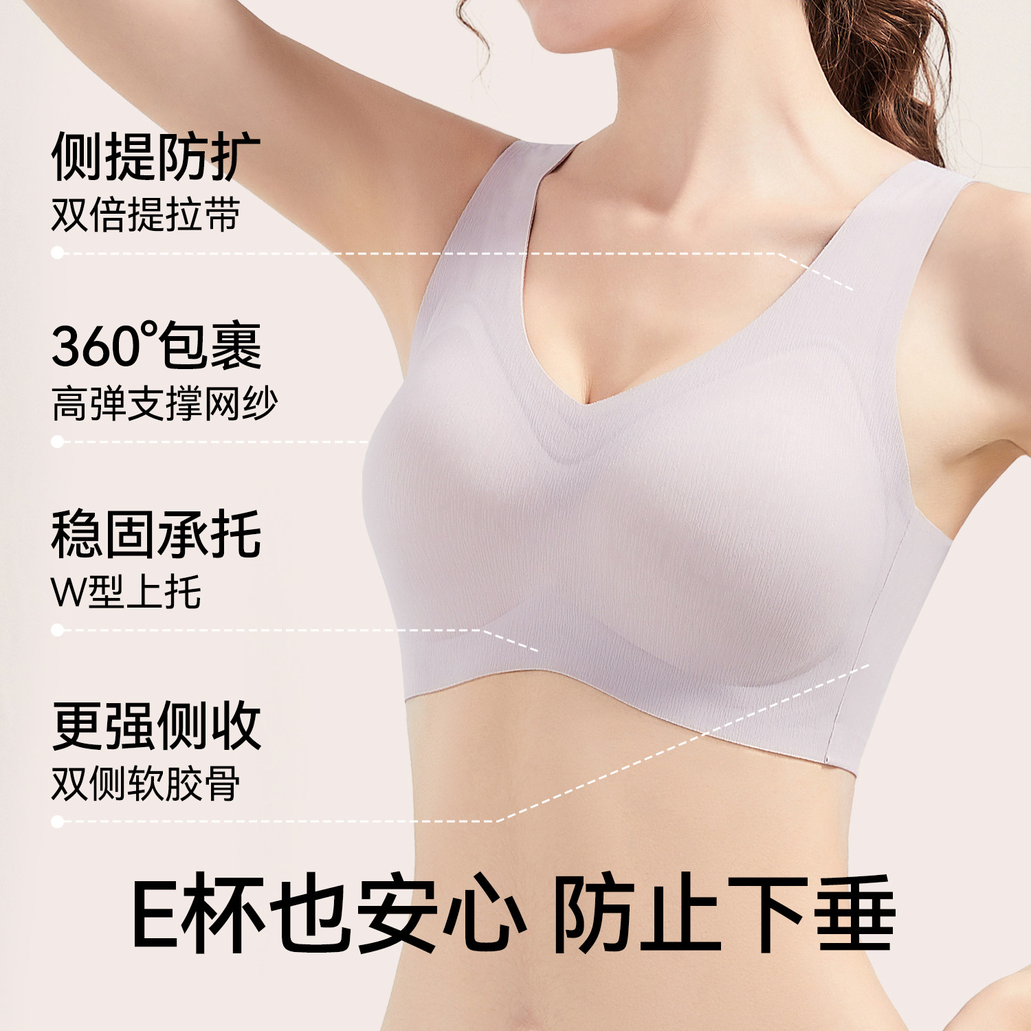 华熙玻尿酸菇娘家软支撑内衣大胸聚拢收副乳防下垂无痕粉底液文胸