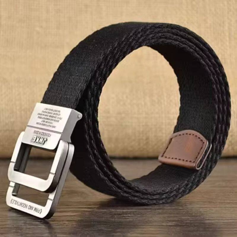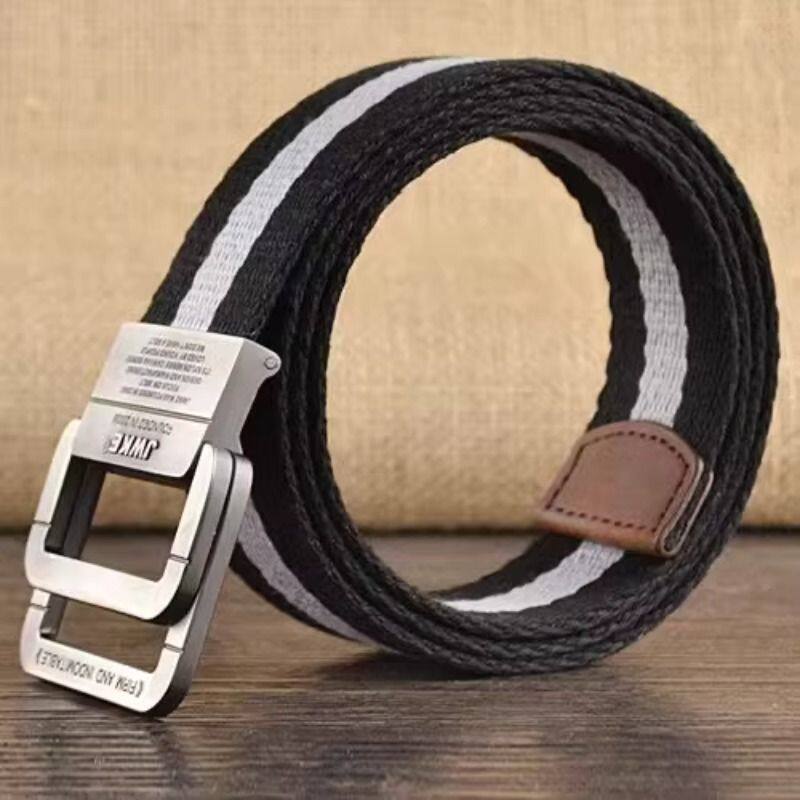 时尚休闲帆布腰带男士双环扣皮带年轻人学生潮流百搭韩版裤带高档