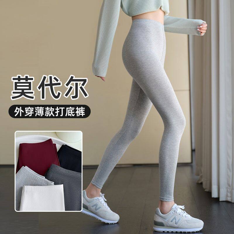 莫代尔打底裤女外穿春秋季薄款夏季紧身大码弹力黑色瑜伽九分裤