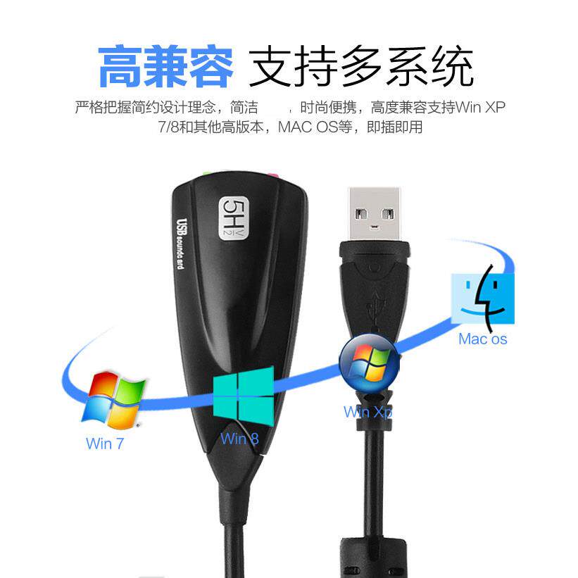 5H外置USB声卡 5Hv2音频耳机麦克风转换器7.1台式机笔记本电脑卡