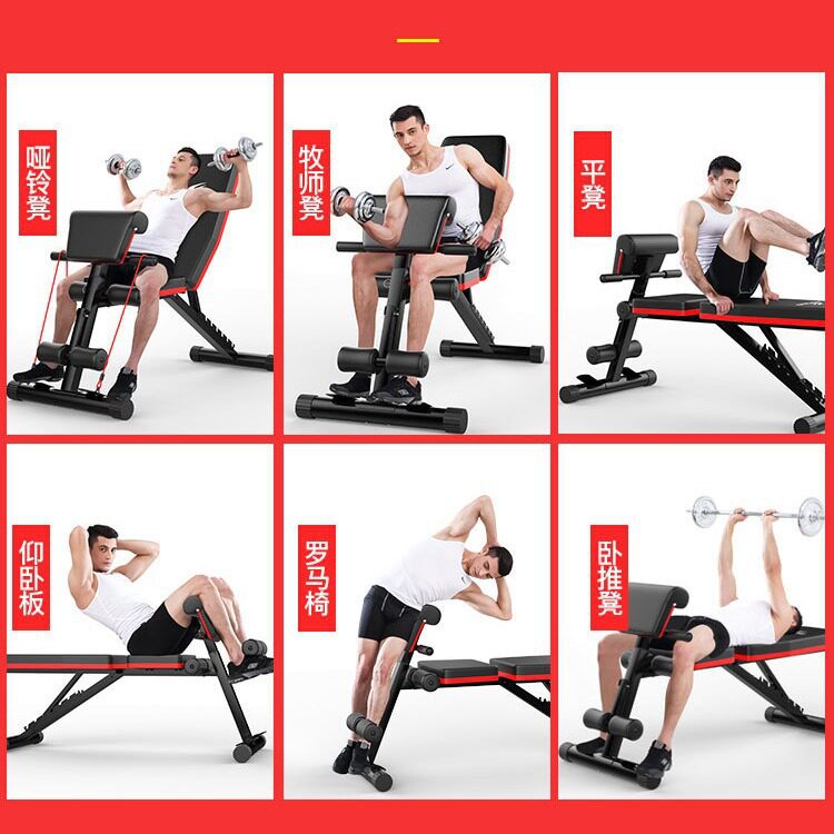 多功能哑铃凳六合一健身椅男生飞鸟卧推凳家用折叠牧师椅健身器材