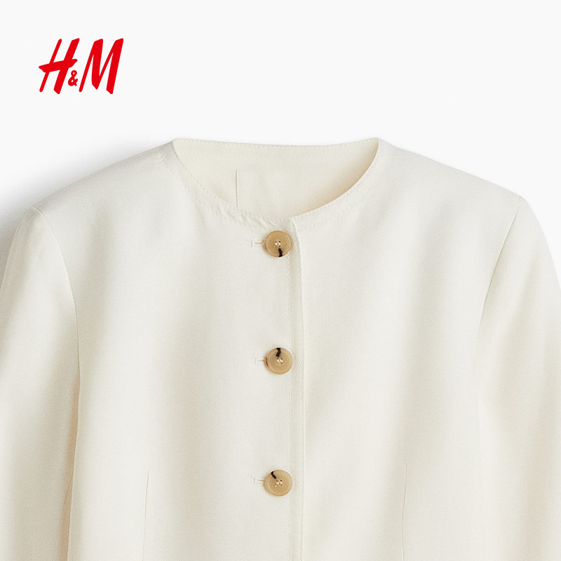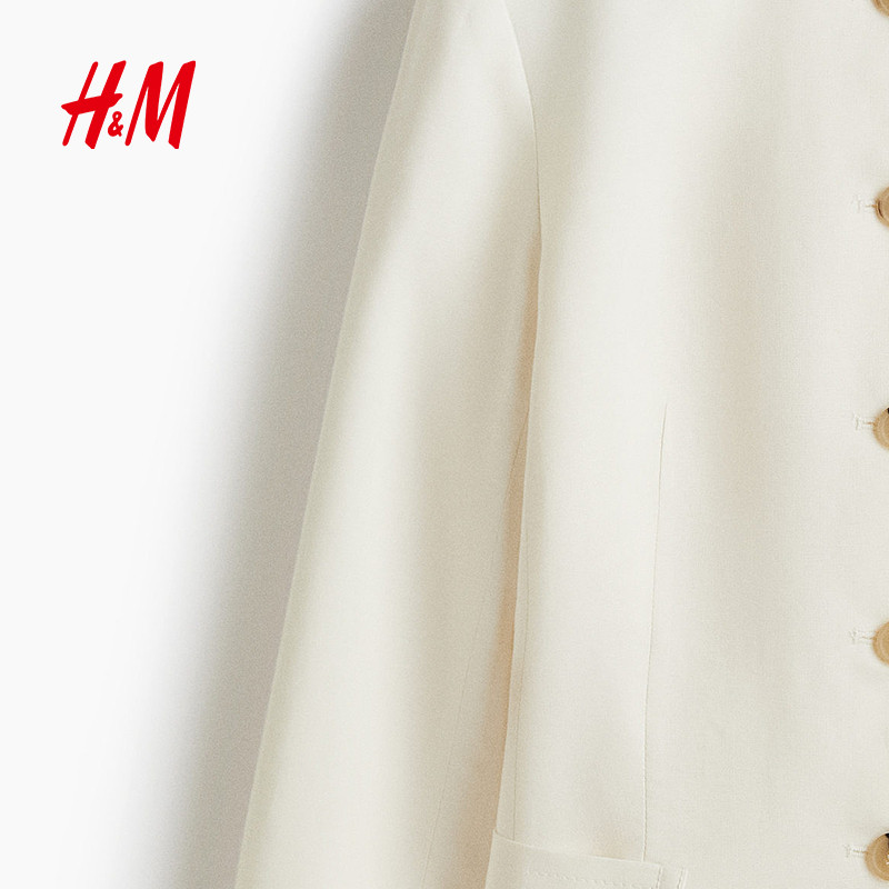 HM西装2025年新款时尚女装亚麻混纺休闲西装1294021