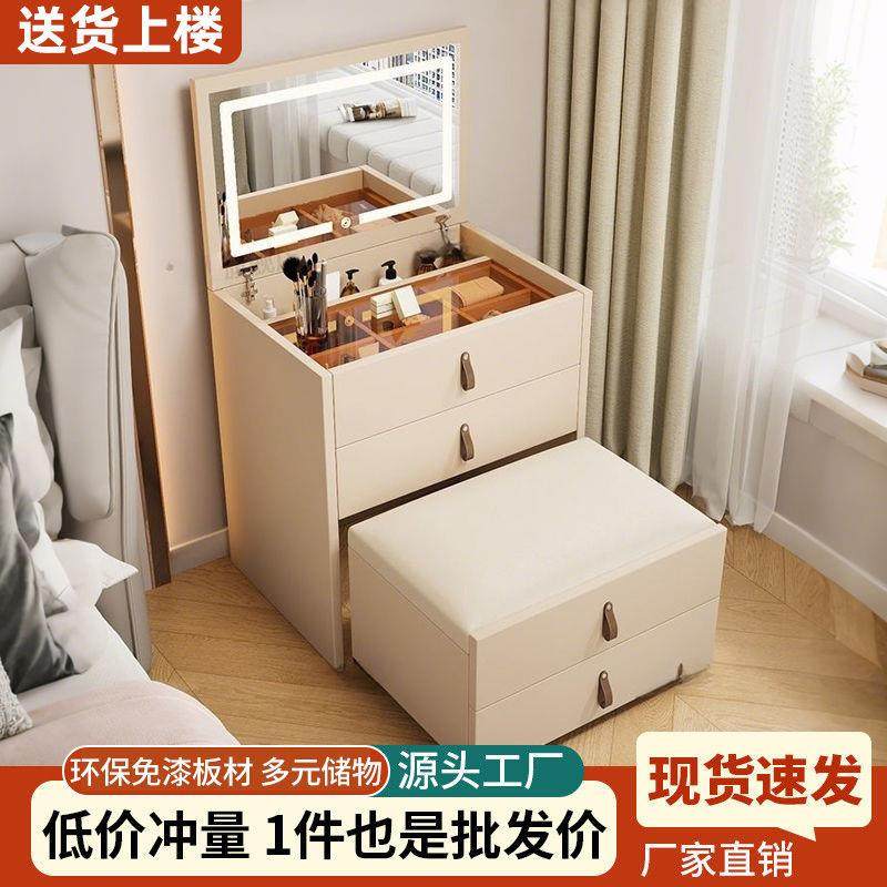 实木梳妆台卧室家用化妆台床头柜一体小型翻盖化妆桌凳斗柜收纳柜