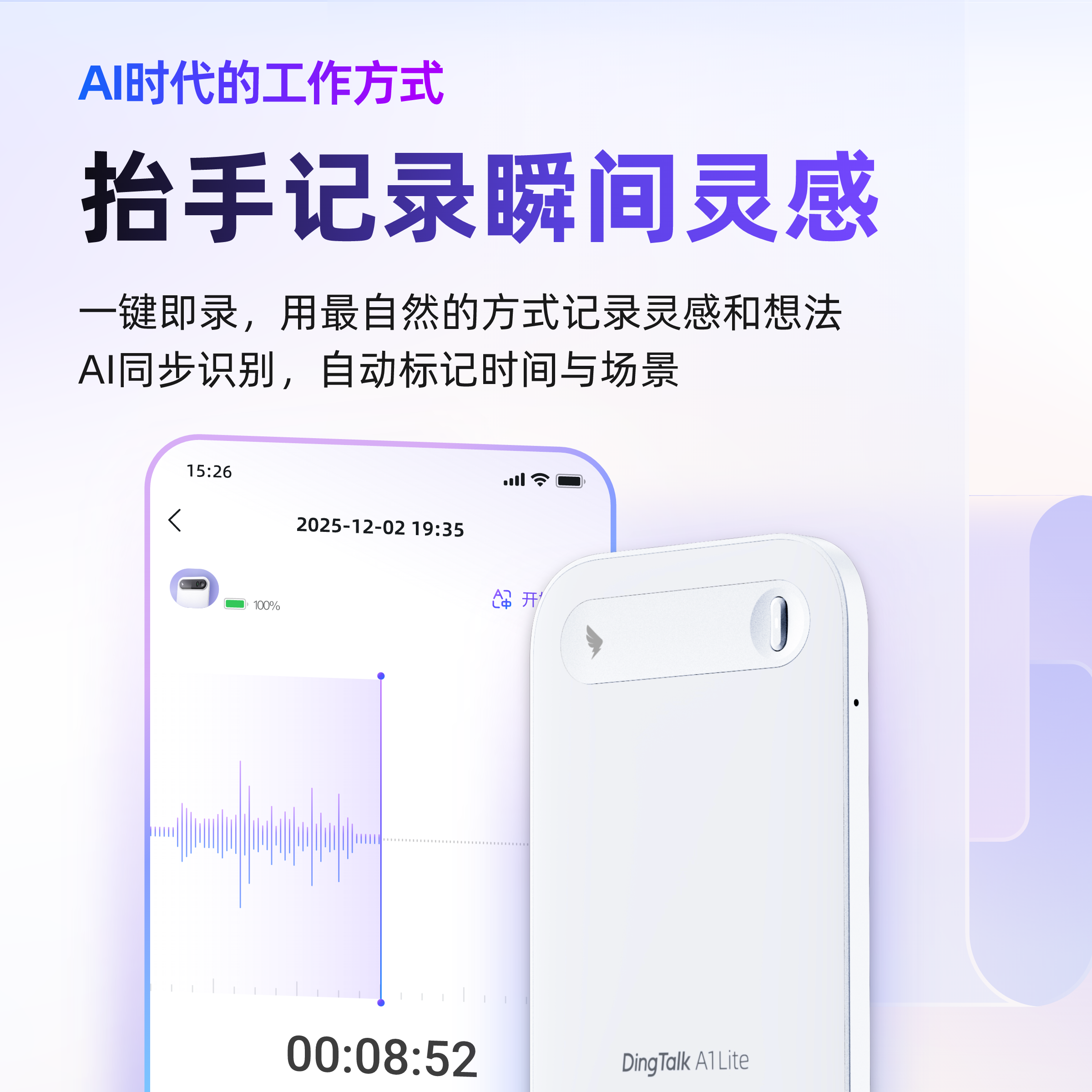 钉钉A1 DingTalk AI青春版智能录音笔 会议纪要 分析总结实时转写