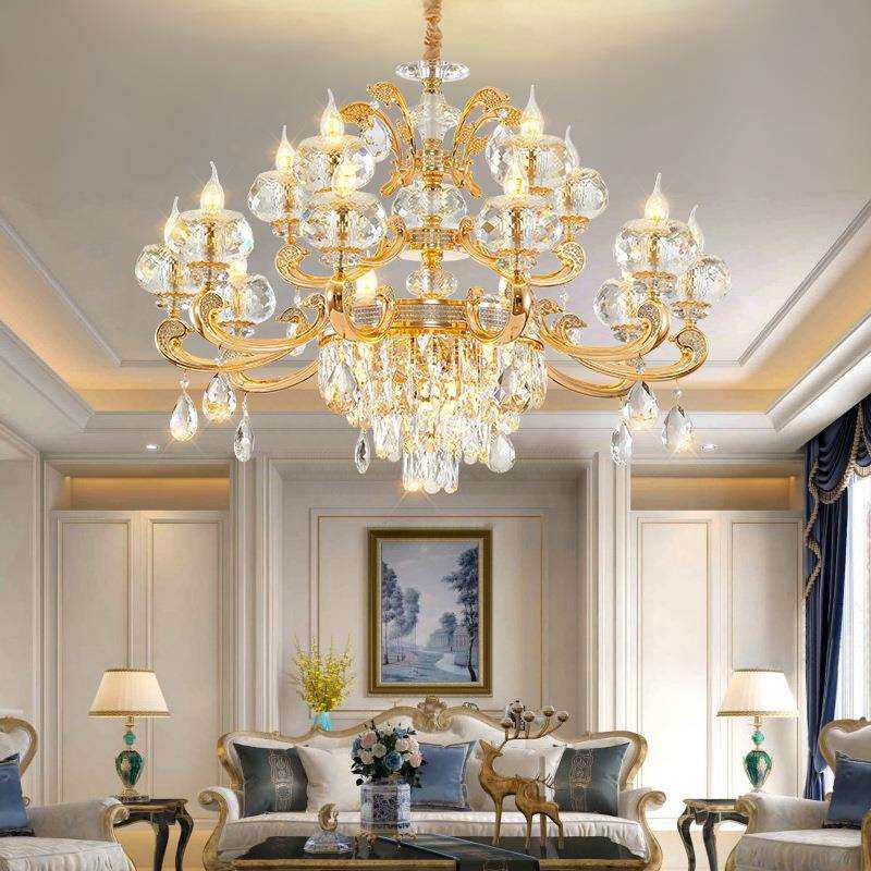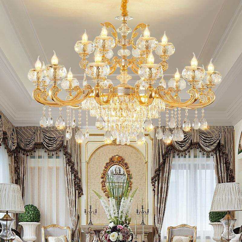 欧式轻奢水晶吊灯中山灯饰别墅酒店餐厅大气奢华K9水晶灯客厅吊灯